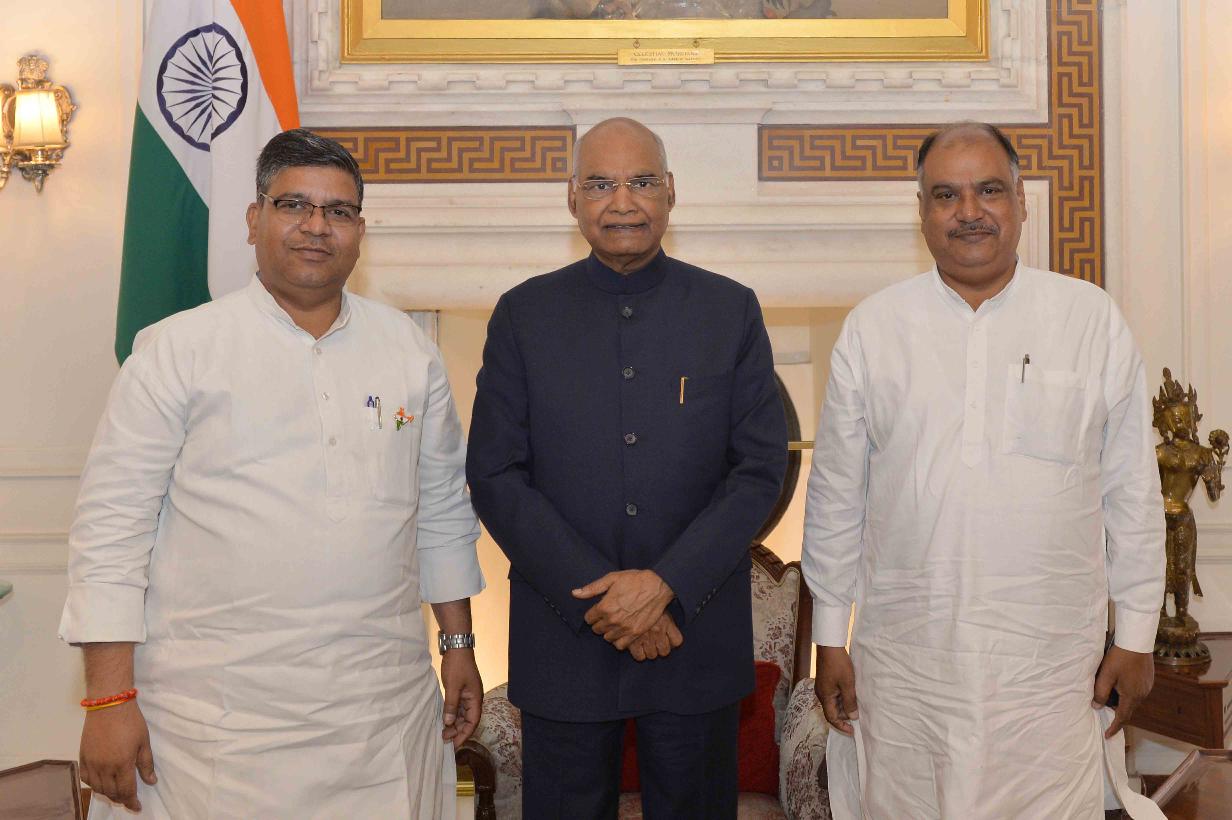 | Caption: | Shri Sanjay Kumar Mahawar Bharatiya and Shri Vishwa Prakash meeting with the President of India, Shri Ram Nath Kovind, at Rashtrapati Bhavan on April 16, 2019. |