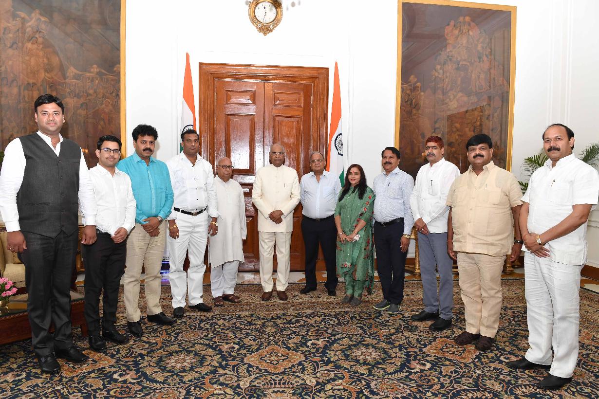 | Caption: | Shri Veereshwar Dwivedi, Vishwa Hindu Parishad, New Delhi with others meeting with the President of India, Shri Ram Nath Kovind, at Rashtrapati Bhavan on April 29, 2019. |