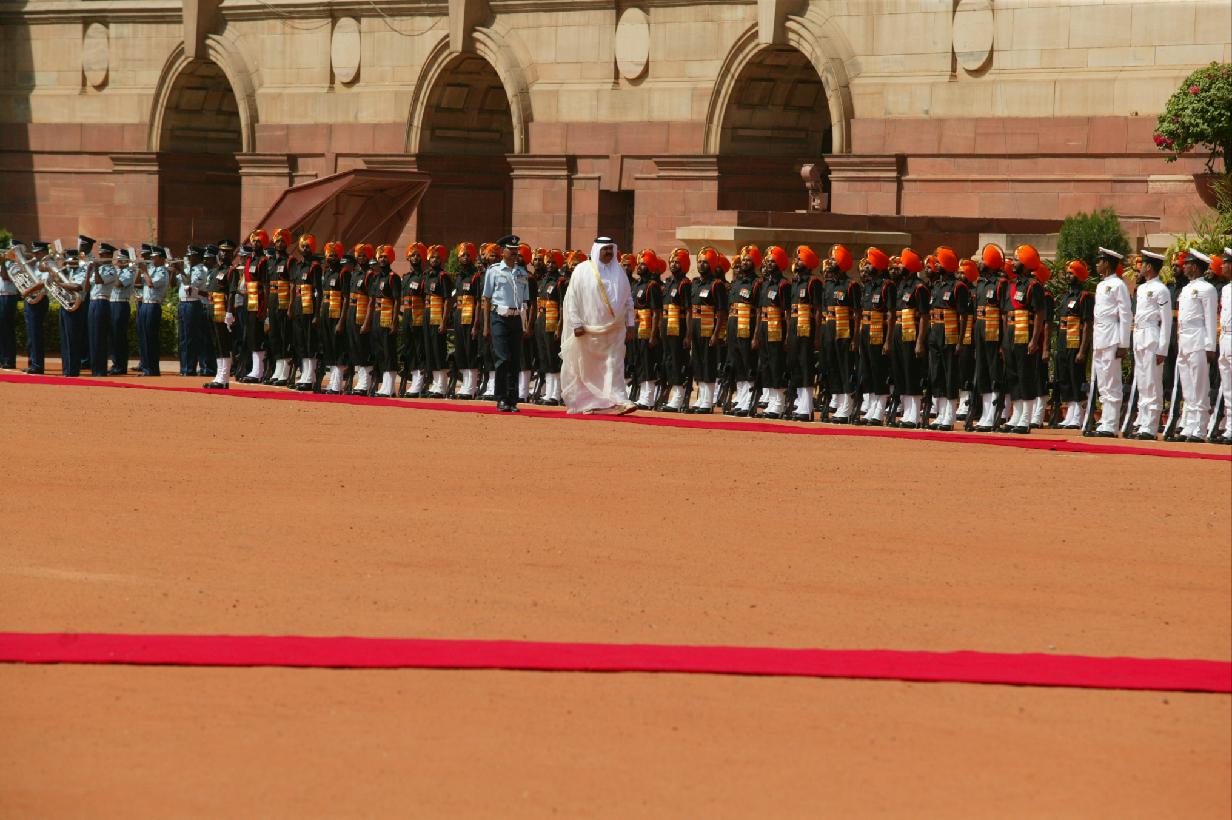 | Caption: | The President of India, Dr A P J Abdul Kalam at the Ceremonial Reception of the Emir of State of Qatar, H H Sheikh Hamad Bin Khalifa AI-Thani at the Forecourt of Rashtrapati Bhavan in New Delhi on April 14, 2005 |