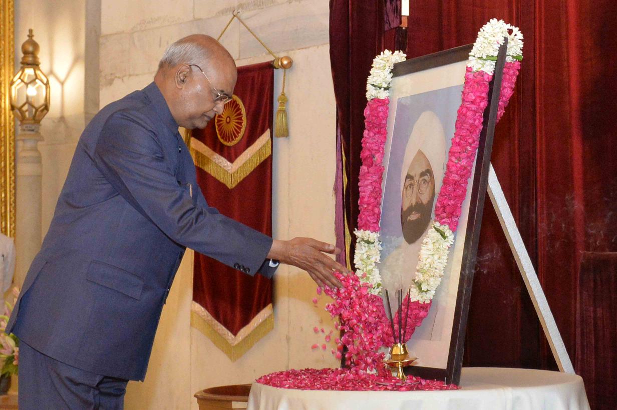 | Caption: | The President of India, Shri Ram Nath Kovind paying floral tributes to Shri Giani Zail Singh, former President of India, on his Birth Anniversary, at Rashtrapati Bhavan on May 05, 2019. |