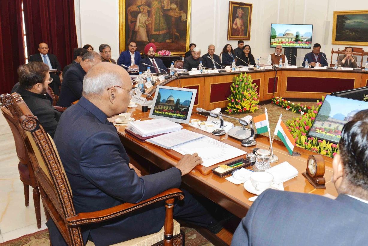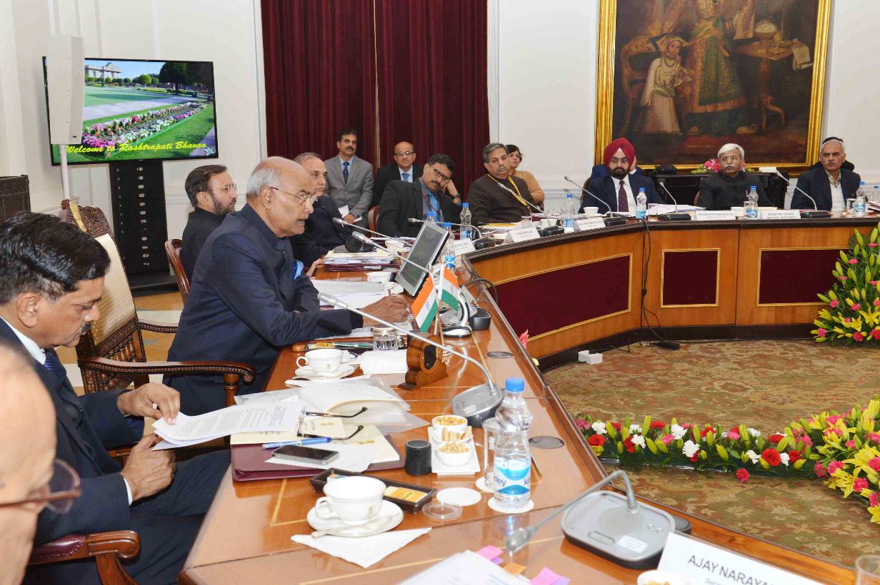 | Caption: | The President of India, Shri Ram Nath Kovind meeting with the Vice Chancellors of new Central Universities, at Rashtrapati Bhavan on January 06, 2018. |