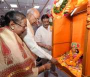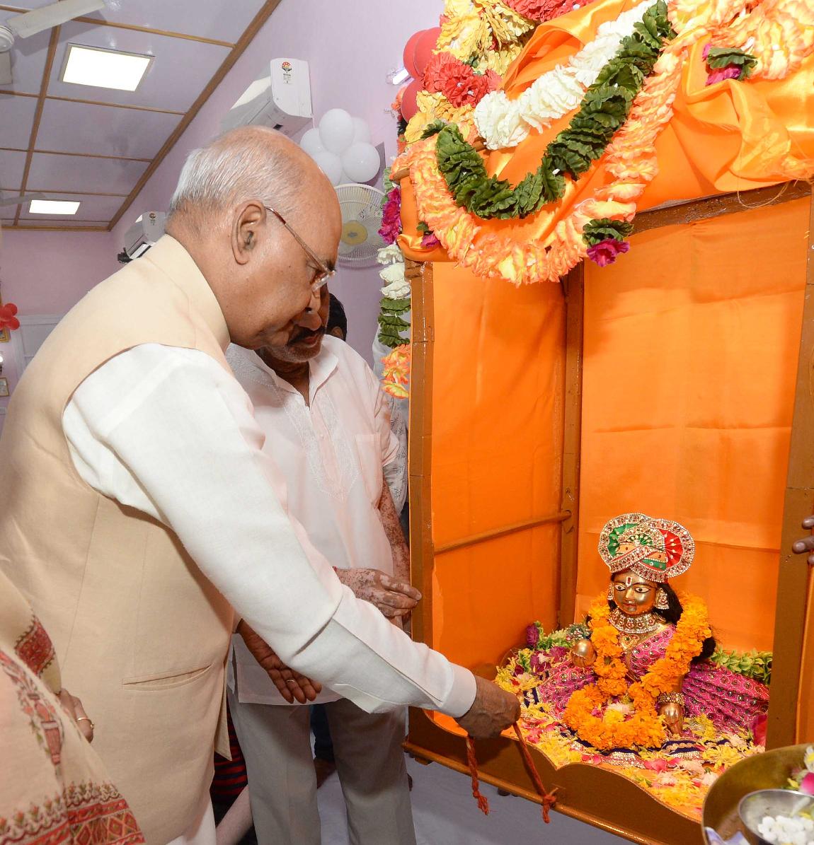 | Caption: | The President of India, Shri Ram Nath Kovind visits Shiv Mandir, on the occasion of Janmashtami, at President's Estate on August 24, 2019. |