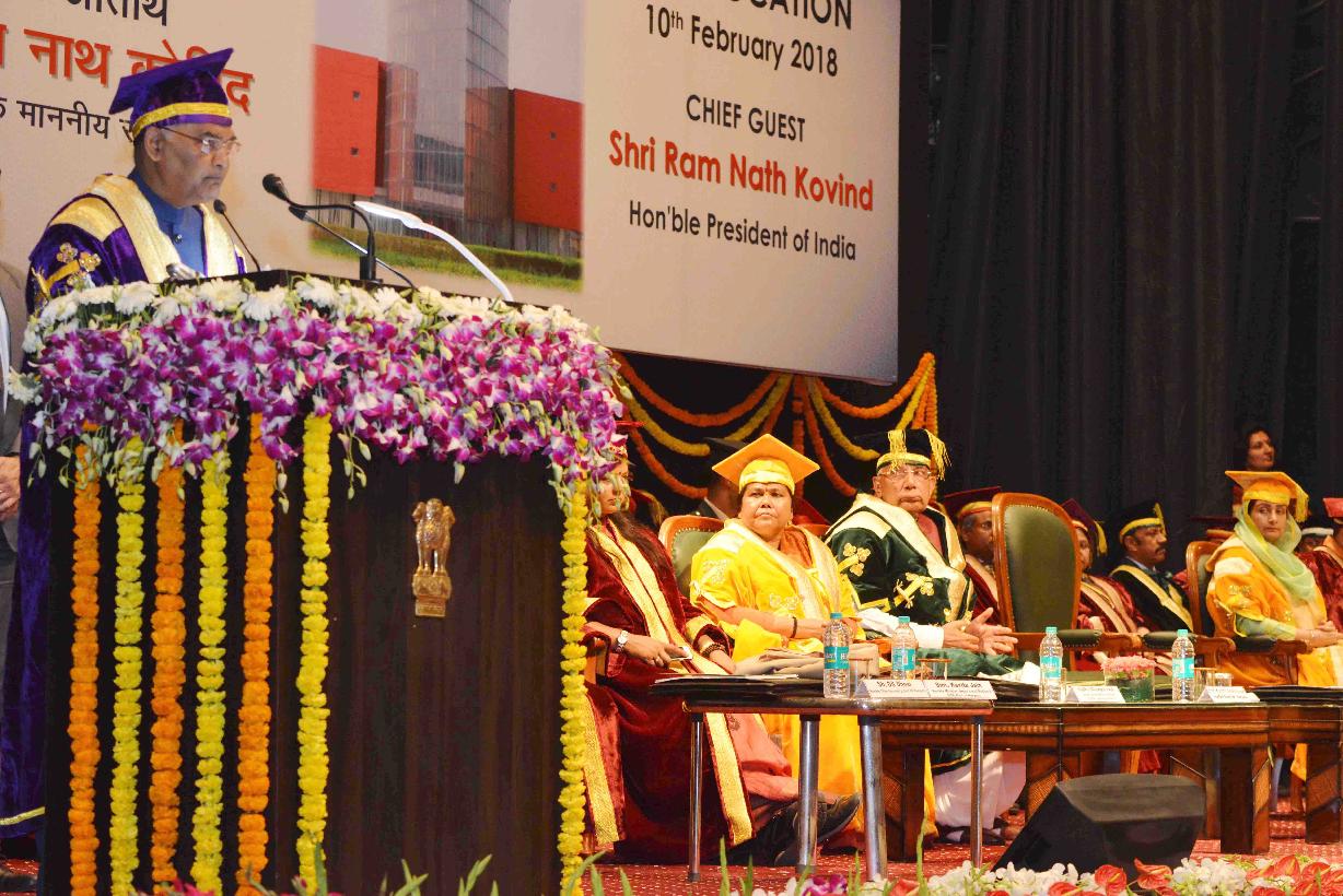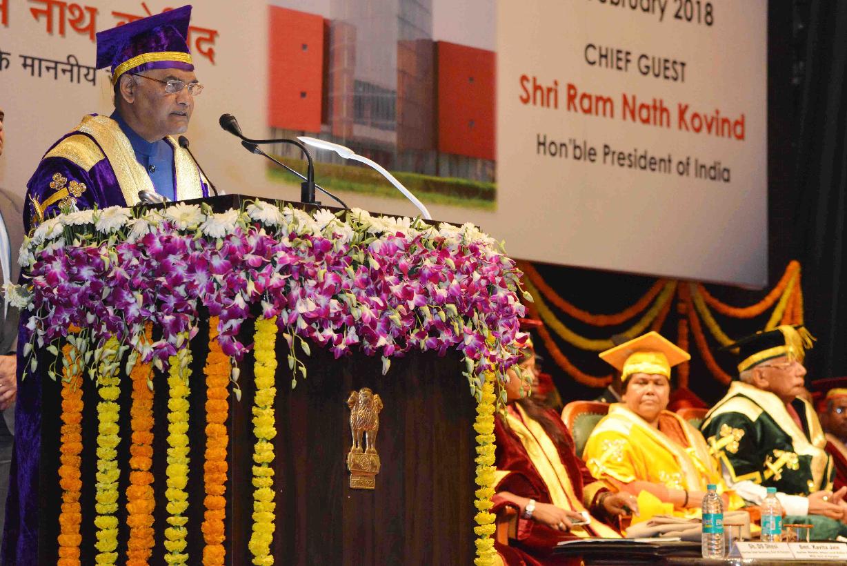 | Caption: | The President of India, Shri Ram Nath Kovind addressing the 1st Convocation of National Institute of Food Technology Entrepreneurship & Management (NIFTEM) and presenting award of Gold Medals, at Sonipat, in Haryana on February 10, 2018. |