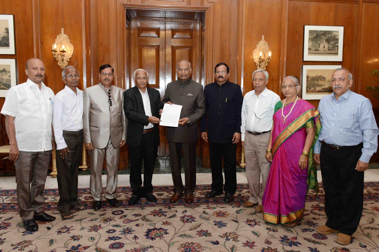 | Caption: | Shri G.R. Dhavalikar, President with office bearers of Marathi Rajbhasha Samiti, Goa meeting with the President of India, Shri Ram Nath Kovind, at Rashtrapati Bhavan on February 08, 2018. |