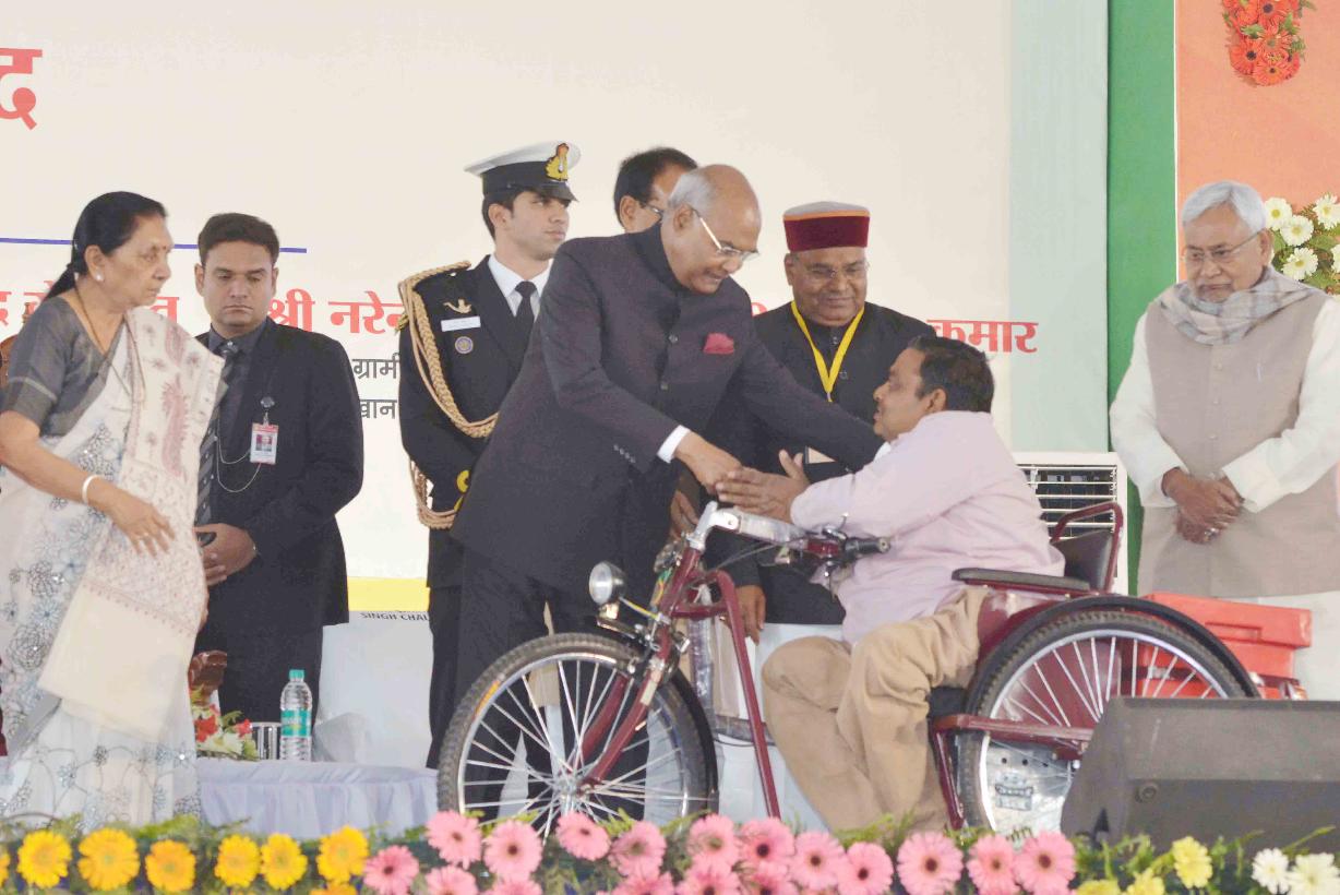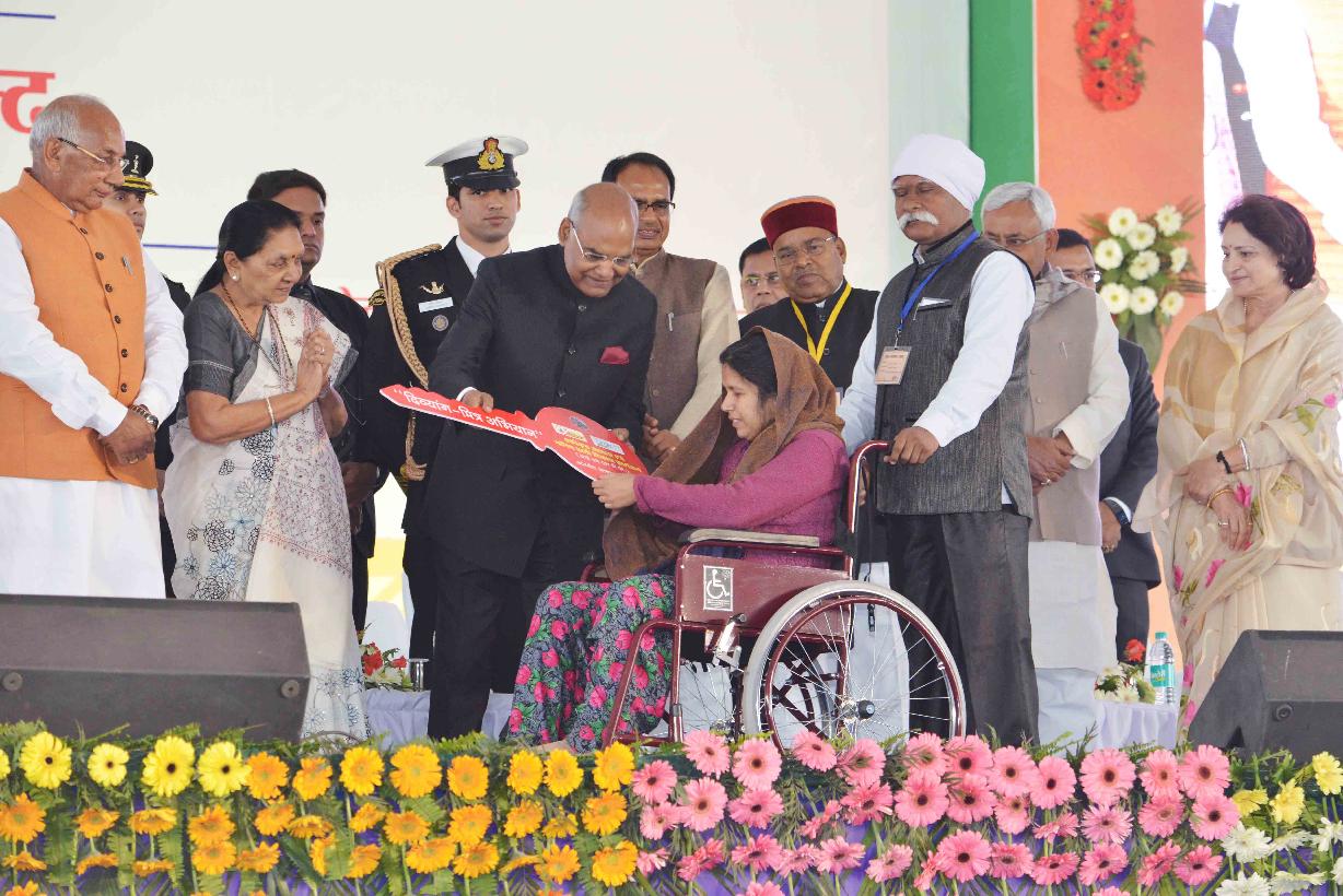 | Caption: | The President of India, Ram Nath Kovind distributing Aids and Assistive devices to Divyangjan and Senior Citizen, at a function to declare the Gwalior as "Divyang Friendly District", organised by Red Cross Society, Haryana Chapter, at Gwalior, in Madhya Pradesh on February 11, 2018. |