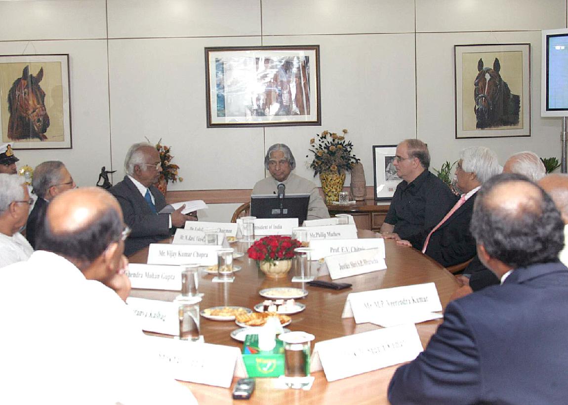 | Caption: | The President of India, Dr A P J Abdul Kalam during visit to the Press Trust of India and interacting with the Members of the PTI Board and PTI Journalists at PTI Building, 4-Parliament Street in New Delhi on June 23, 2007 |