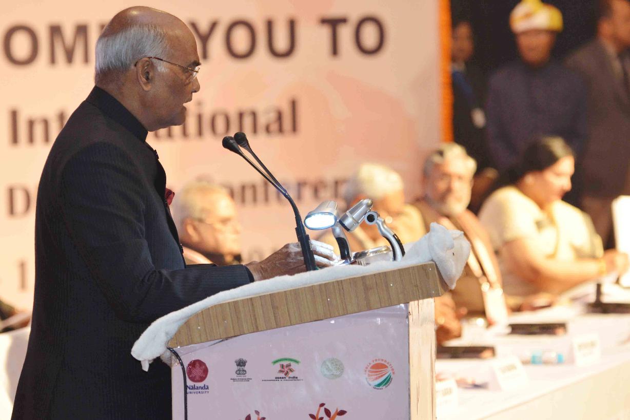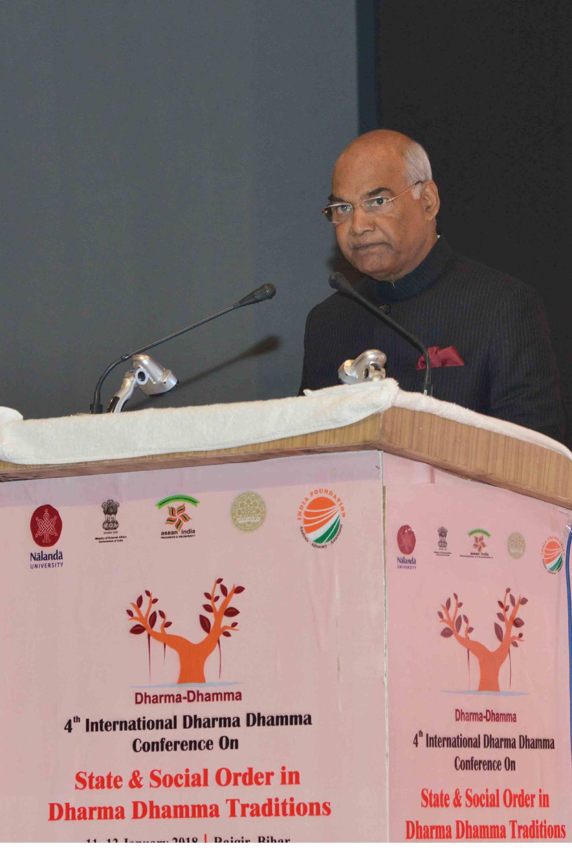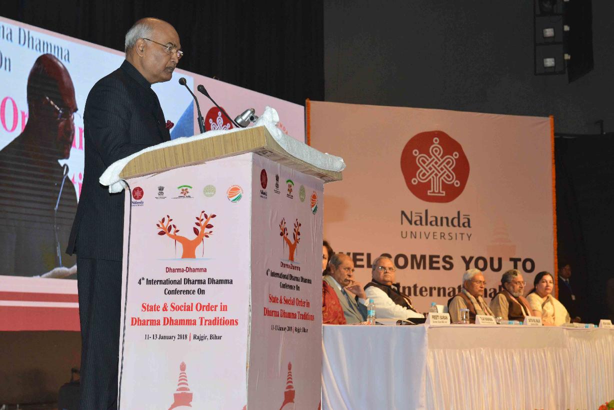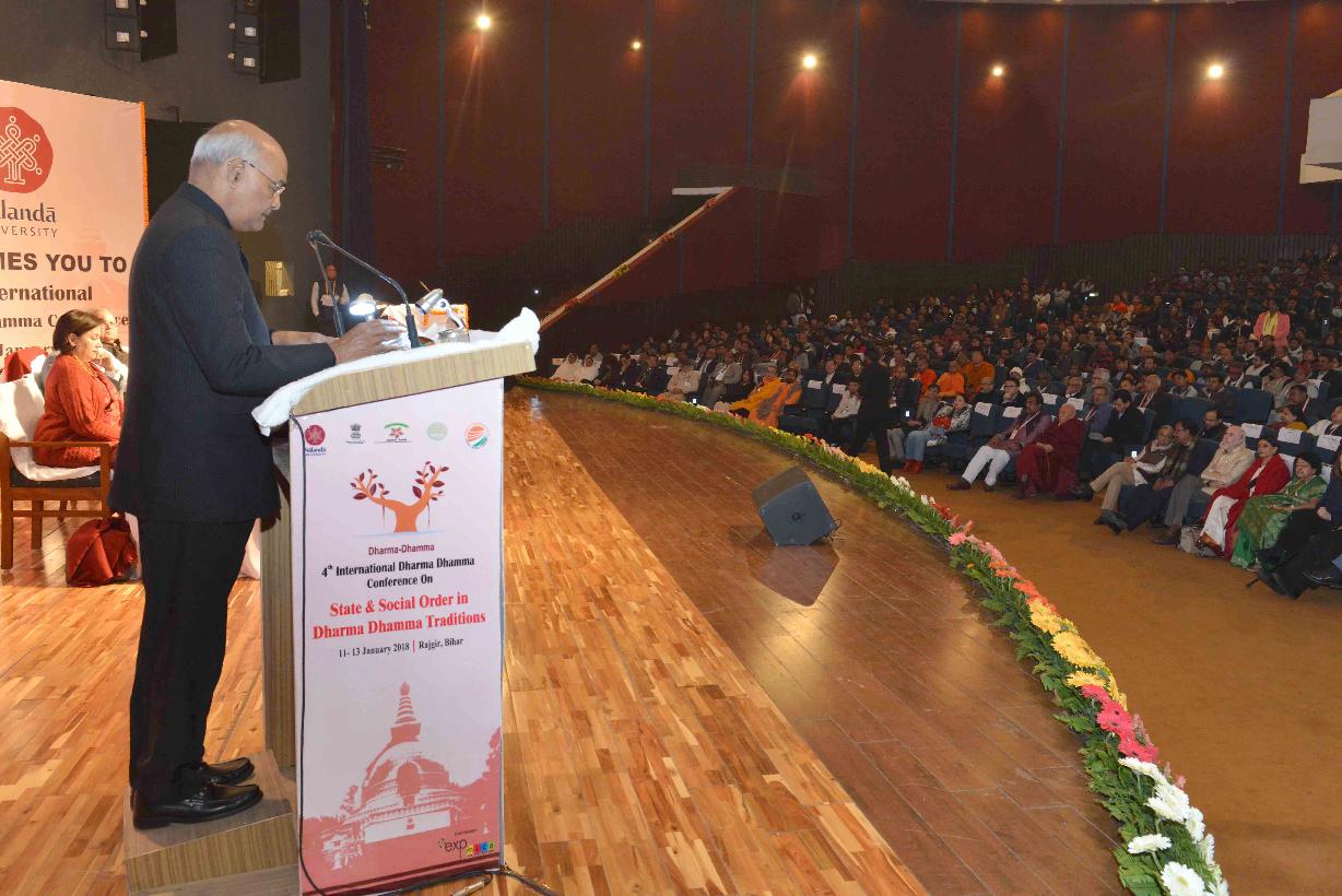 | Caption: | The President of India, Shri Ram Nath Kovind addressing at the inauguration of the Conference on Dharma Dhamma, organised by Nalanda University in collaboration with the Centre for Study of Religion and Society, India Foundation and the Ministry of External Affairs, at Rajgir, in Bihar on January 11, 2018. |