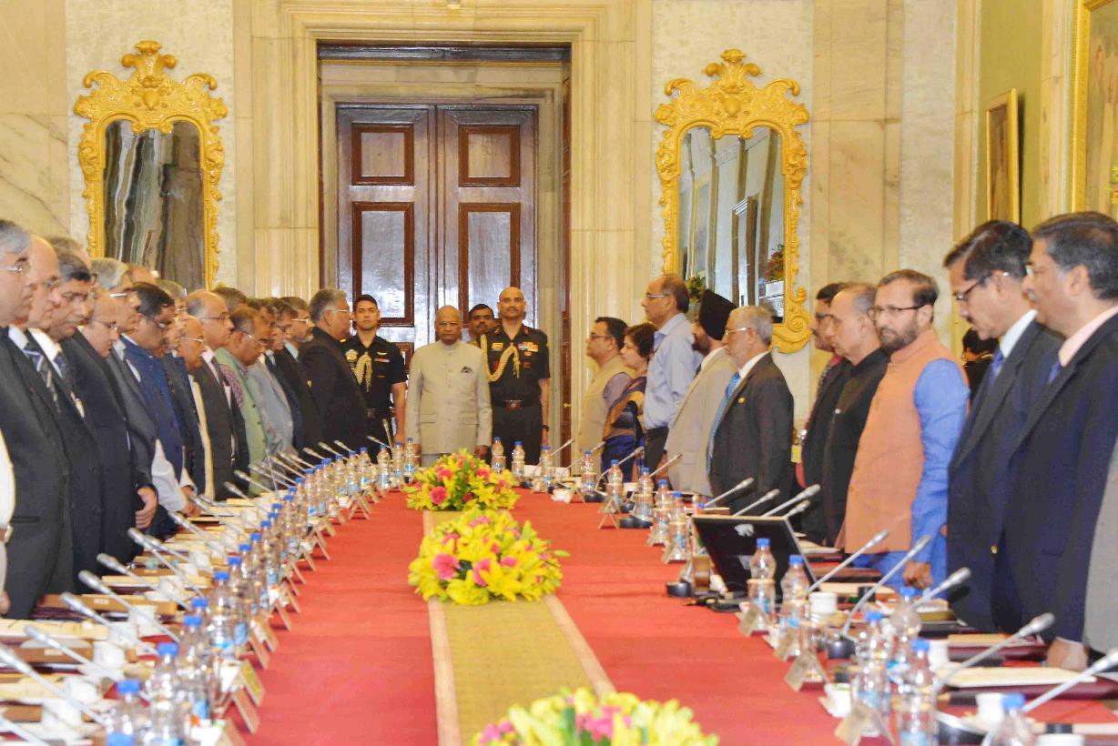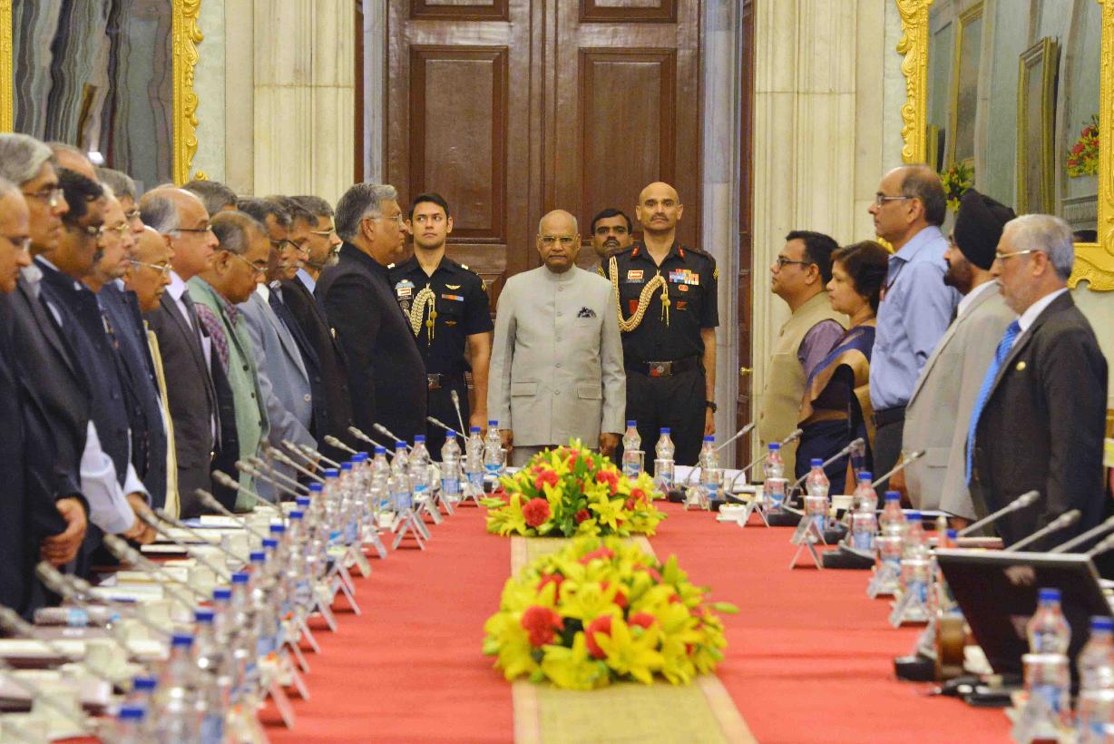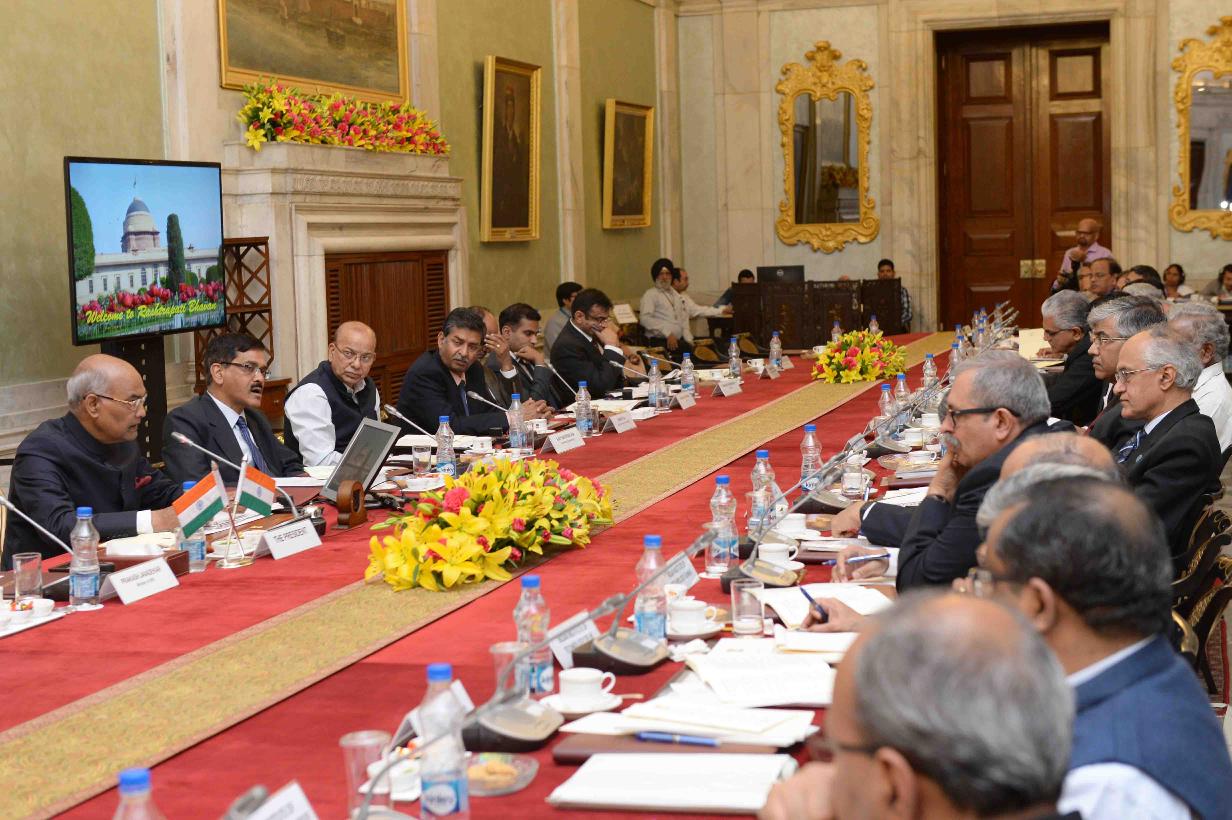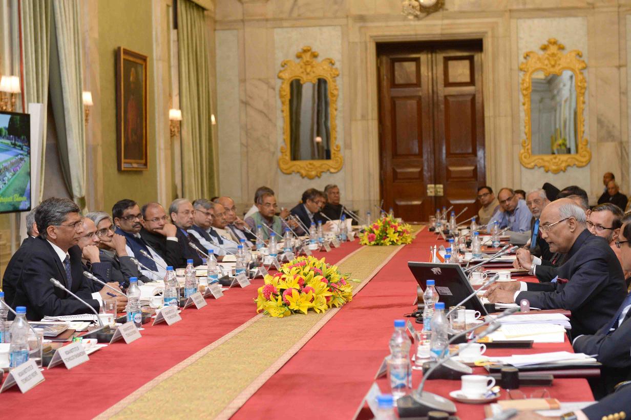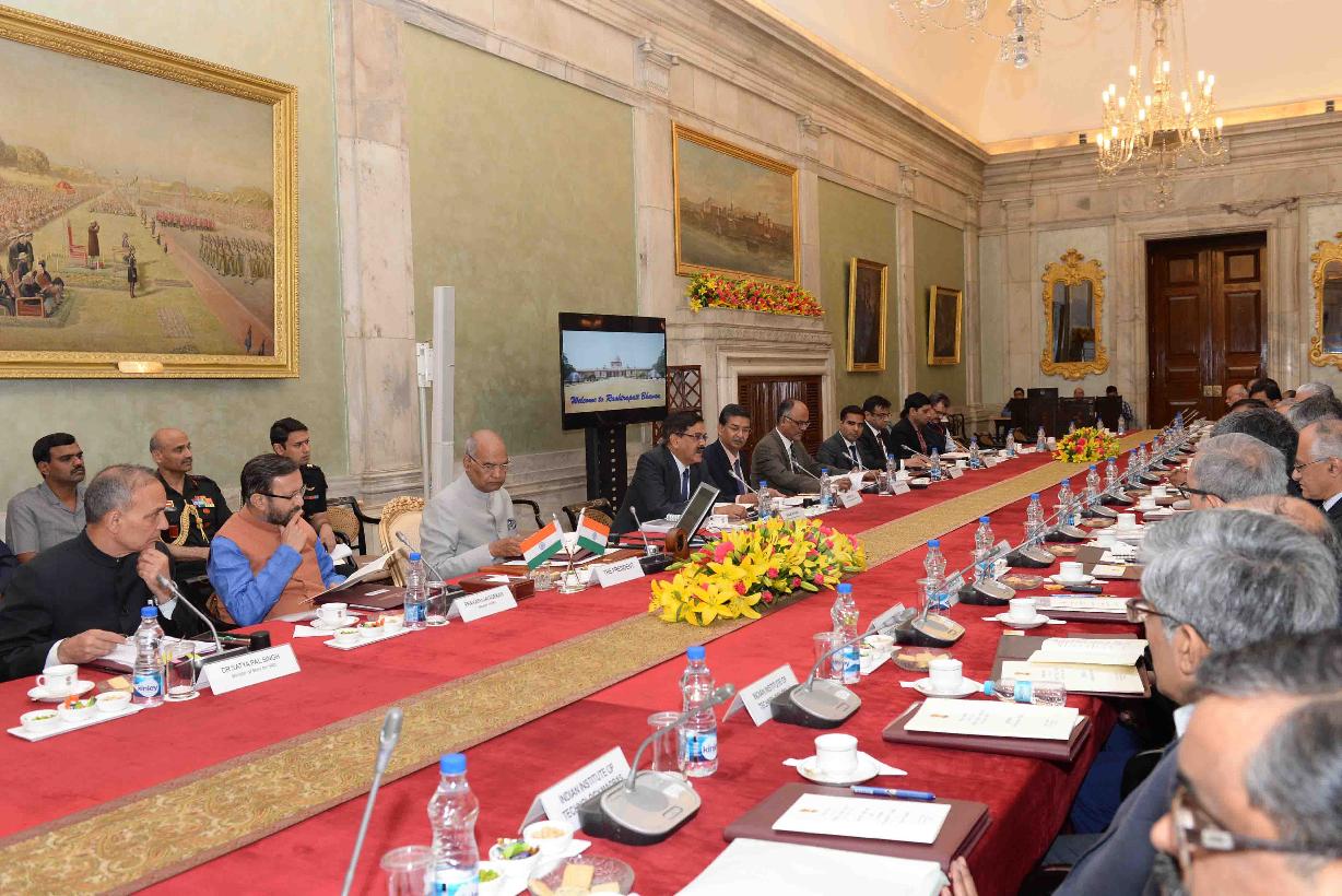 | Caption: | The President of India, Shri Ram Nath Kovind meeting with the Directors of Indian Institutes of Technology (IITs), Indian Institute of Science Bangalore (IISC-B) and Indian Institutes of Science Education and Research (IISERs), at Rastrapati Bhavan on March 06, 2018. |