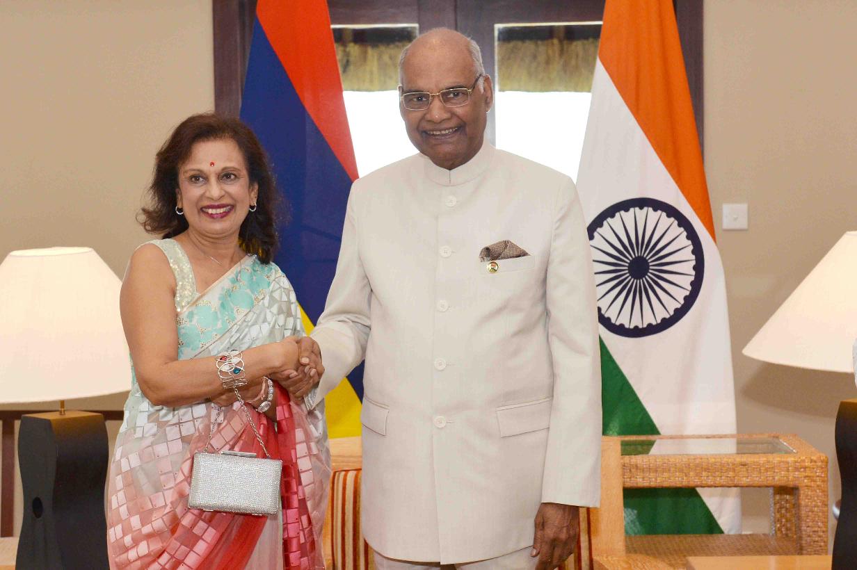 | Caption: | The Speaker of the National Assembly of Mauritius, Hon. Mrs. Santi Bai Hanoomanjee calling on the President of India, Shri Ram Nath Kovind, at Port Louis, in Mauritius on March 12, 2018. |