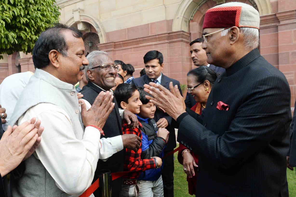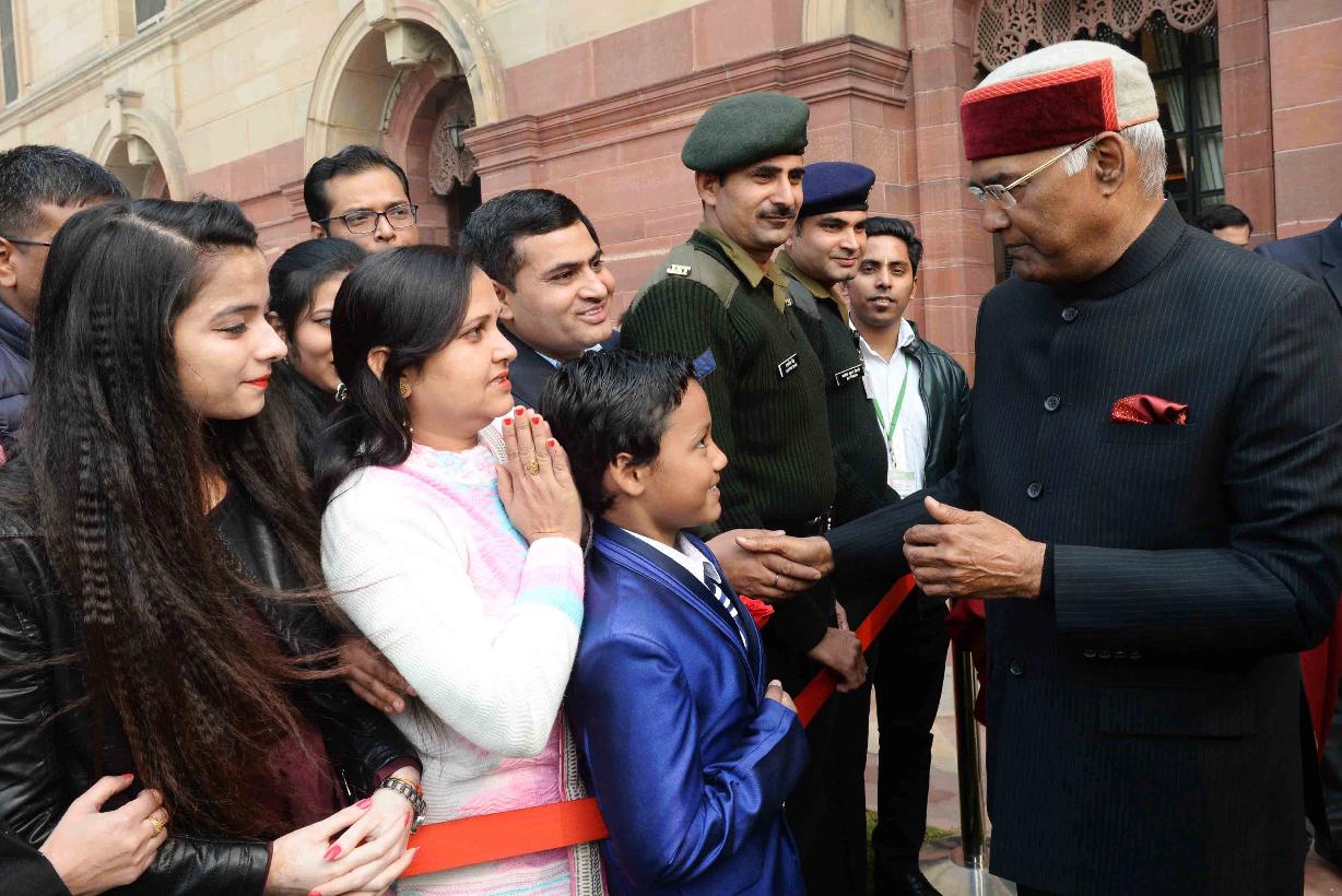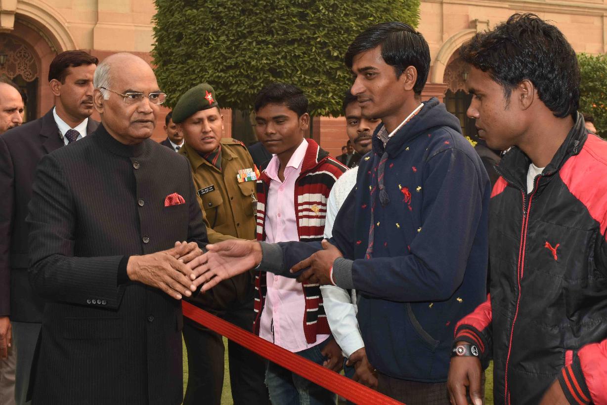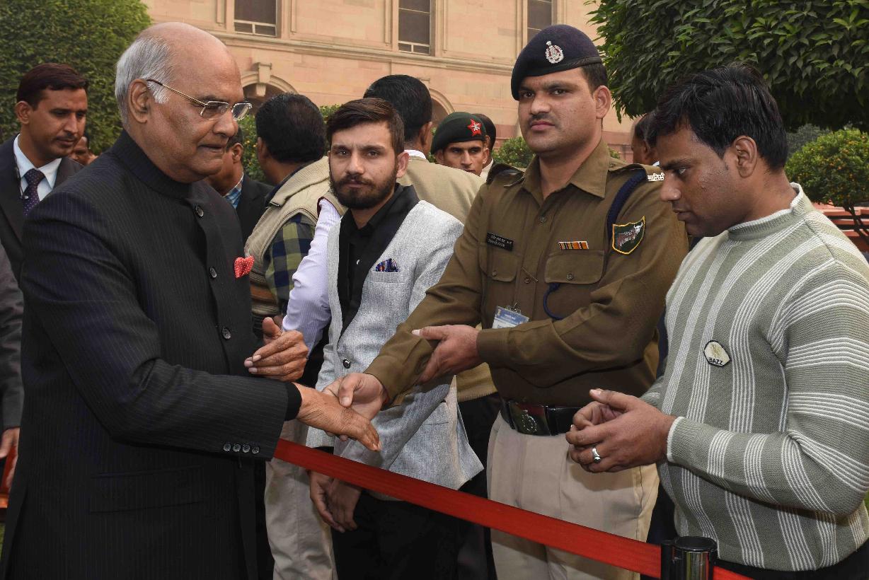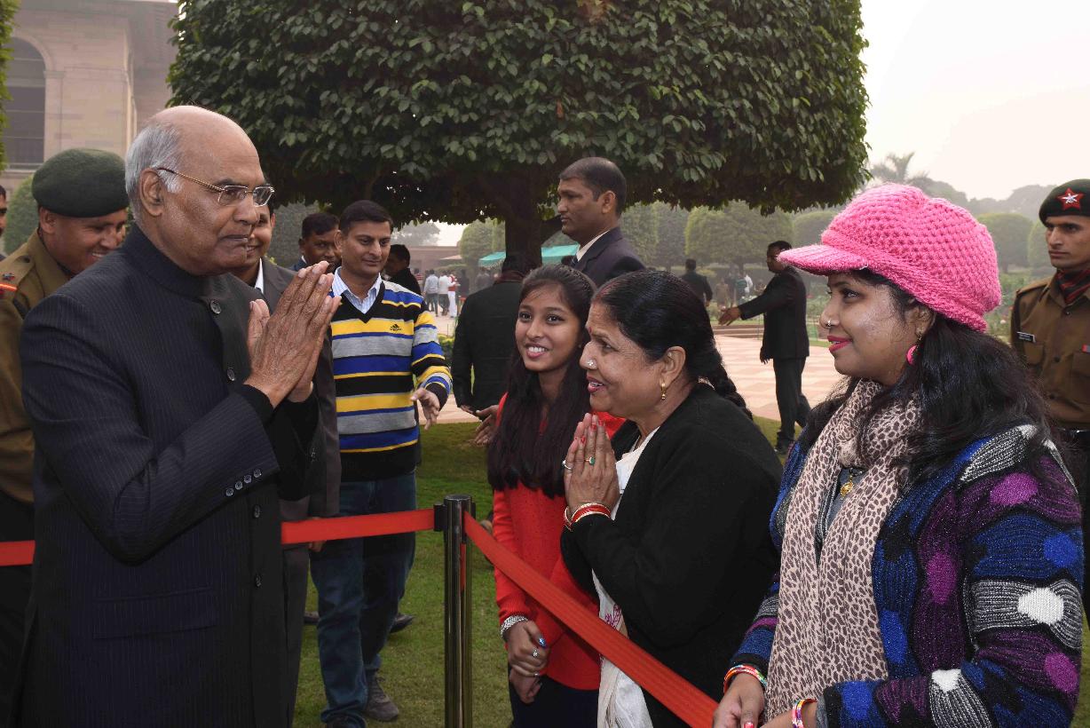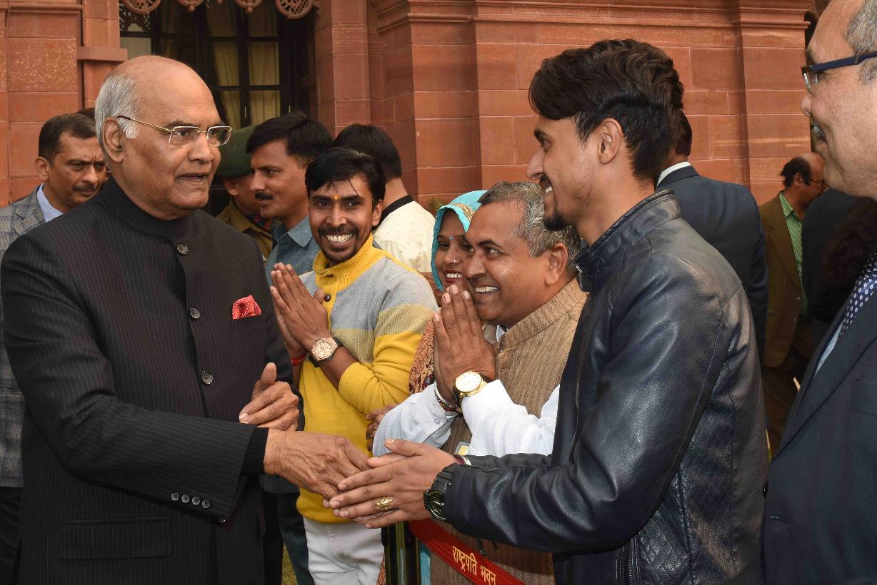 | Caption: | The President of India, Shri Ram Nath Kovind receiving New Year greetings from people from all walks of life, at Rashtrapati Bhavan on January 01, 2018. |