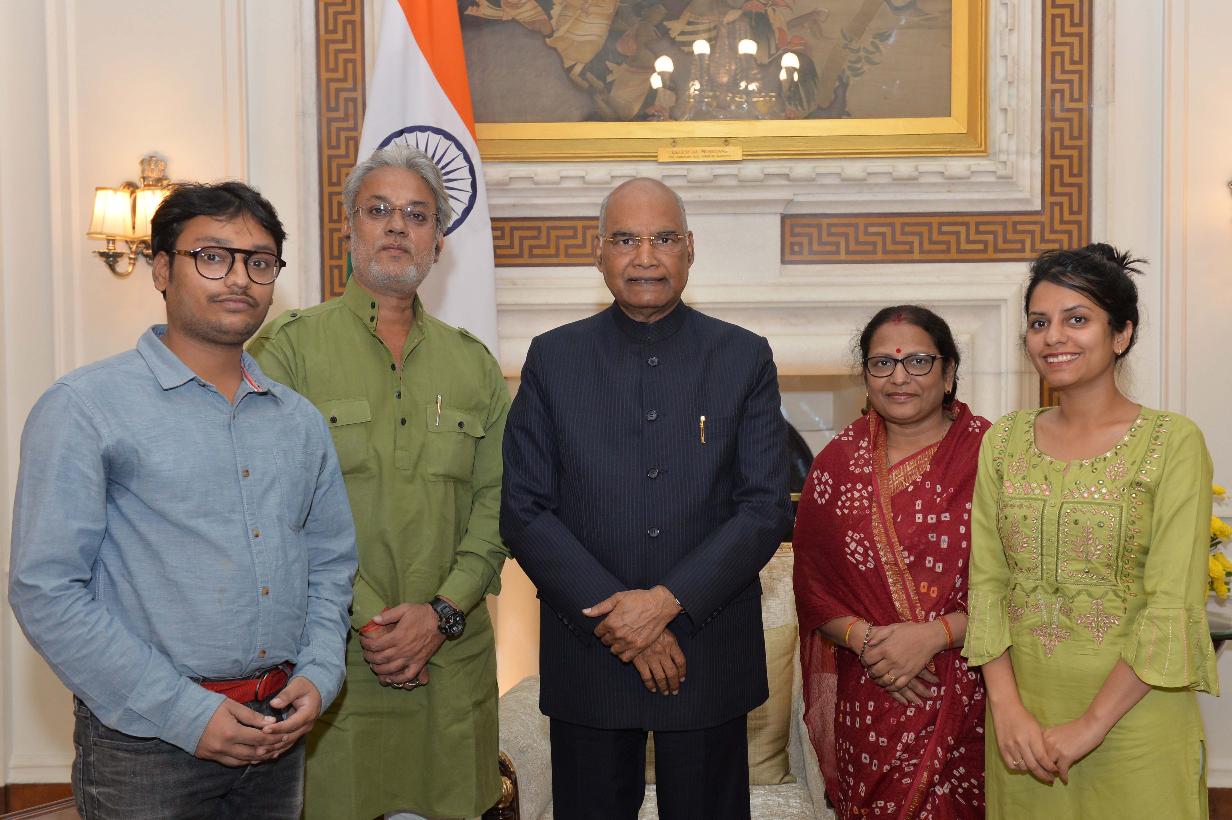 | Caption: | Shri Brajbhushan Singh along with his family from Jalaun, Uttar Pradesh meeting with the President of India, Shri Ram Nath Kovind, at Rashtrapati Bhavan on November 13, 2019. |