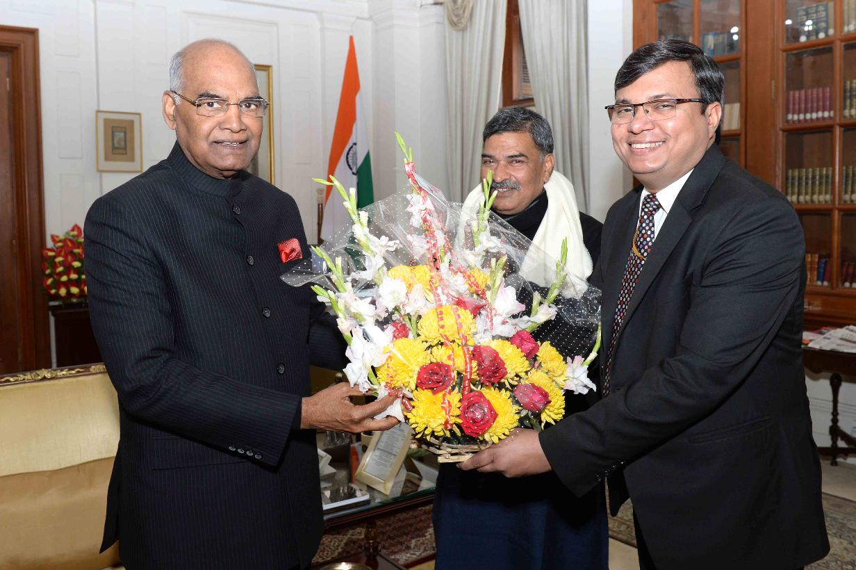 | Caption: | Dr. Arun Kumar, MP (LS) from Jahanabad (Bihar) along with Dr. Anup Kumar meeting with the President of India, Shri Ram Nath Kovind, at Rashtrapati Bhavan on January 03, 2018. |