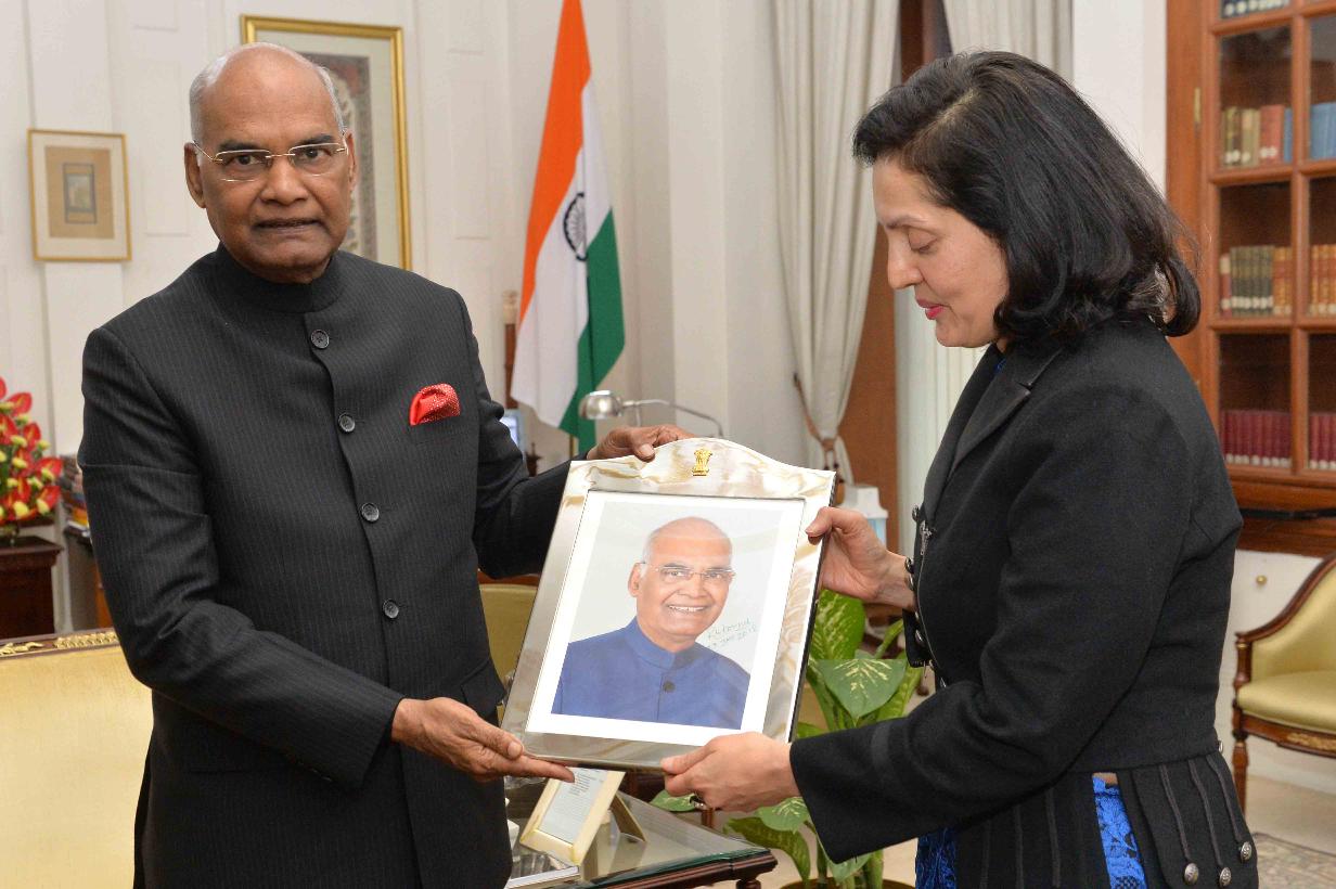 | Caption: | The High Commissioner of India to South Africa, Ms. Ruchira Kamboj calling on the President of India, Shri Ram Nath Kovind, at Rashtrapati Bhavan on January 03, 2018. |