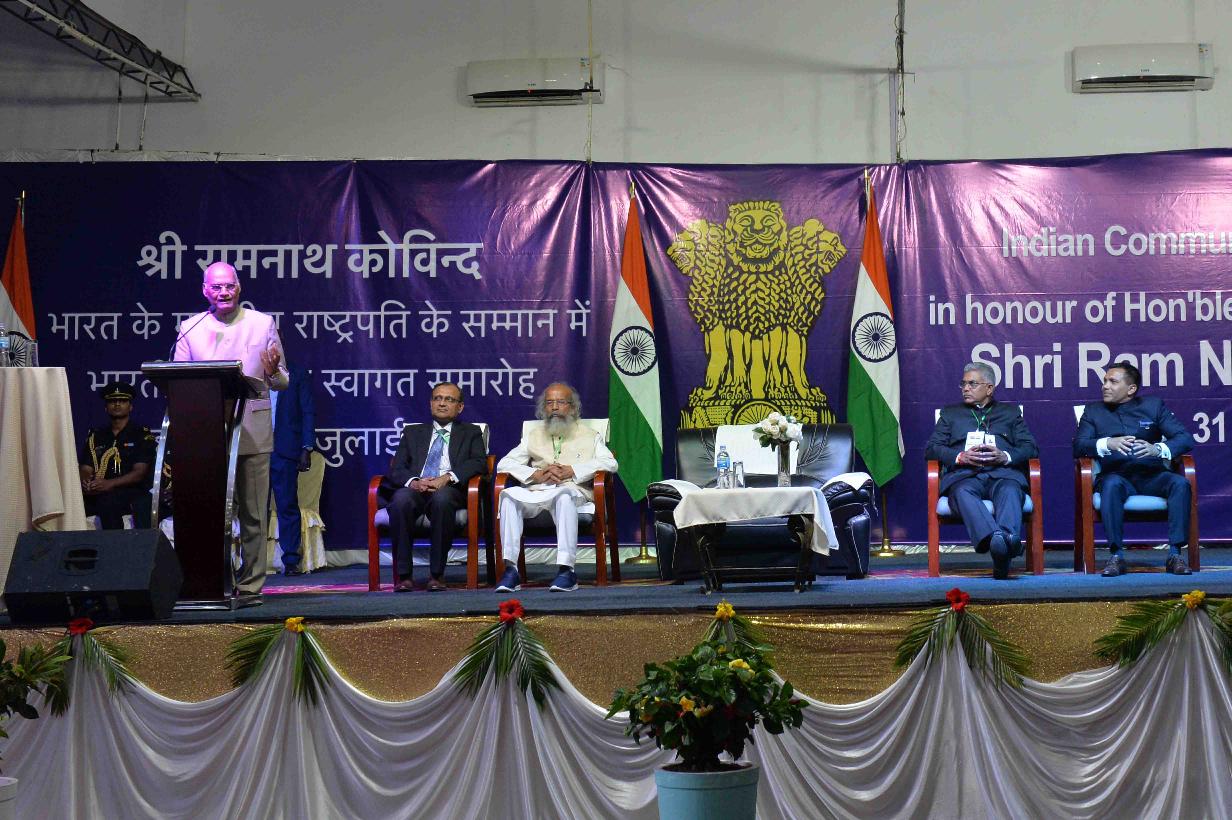 | Caption: | The President of India, Shri Ram Nath Kovind addressing at the Indian Community Reception, at Pencha Mi Conference Centre, in Banjul, The Gambia on July 31, 2019. |