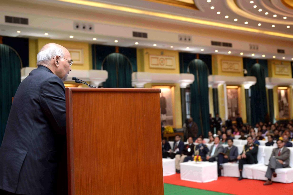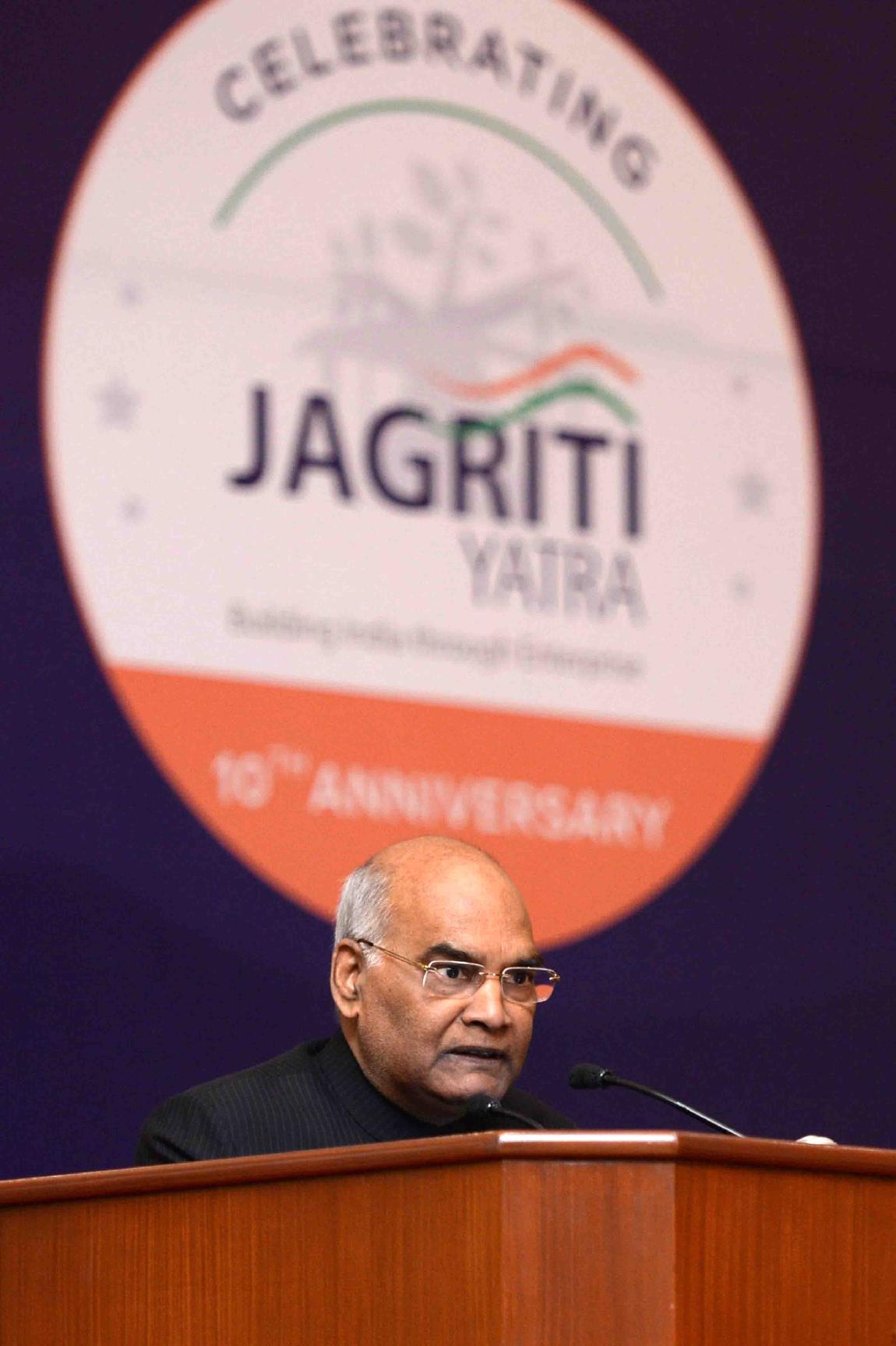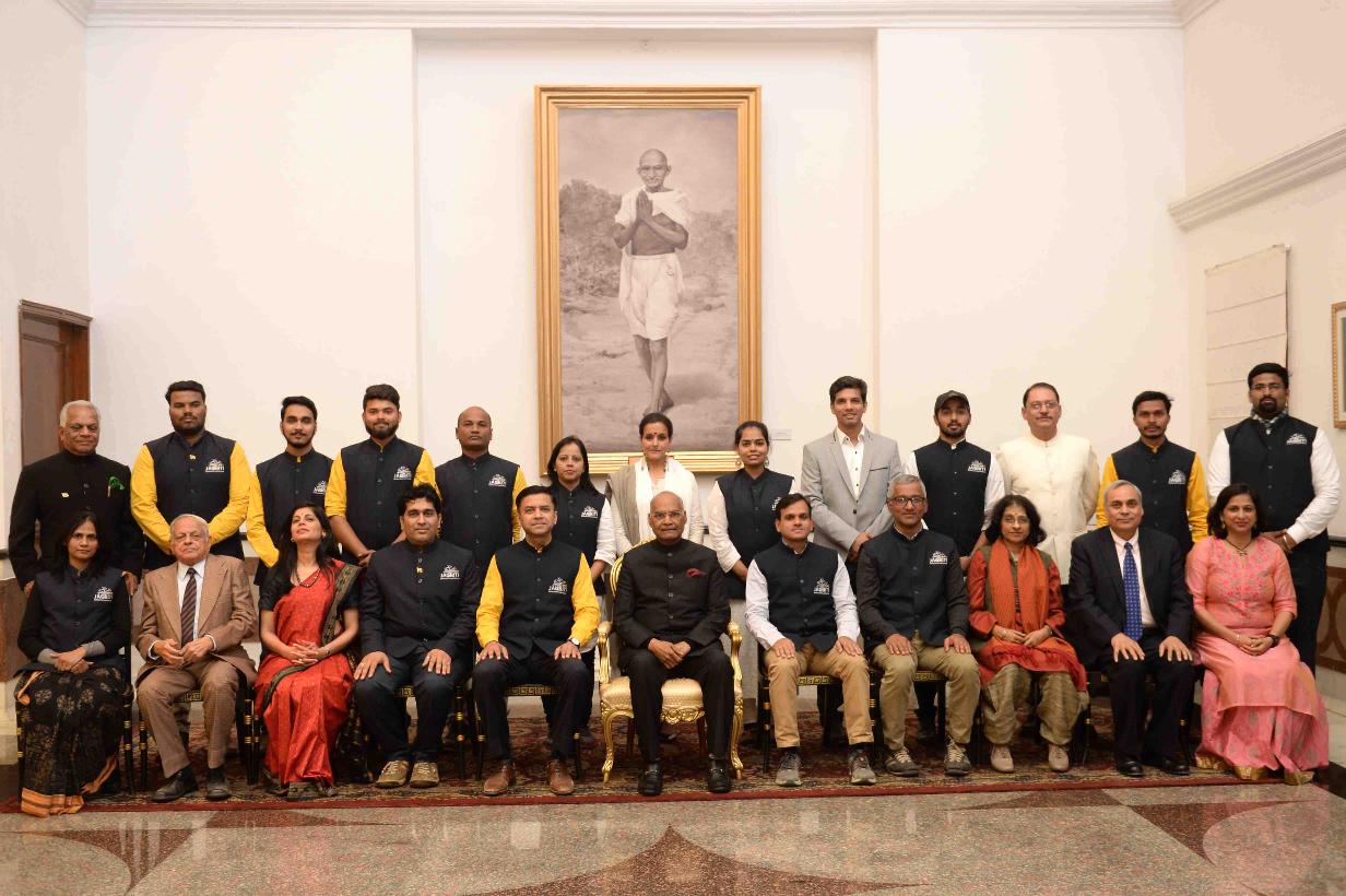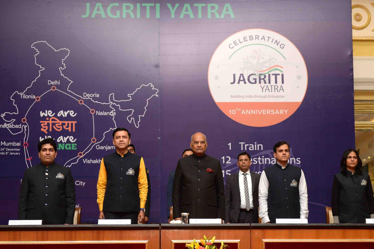 | Caption: | The President of India, Shri Ram Nath Kovind meeting with the participants and team members from Jagriti Yatra-2017, at Rashtrapati Bhavan Cultural Centre on January 05, 2018. |