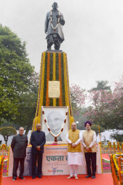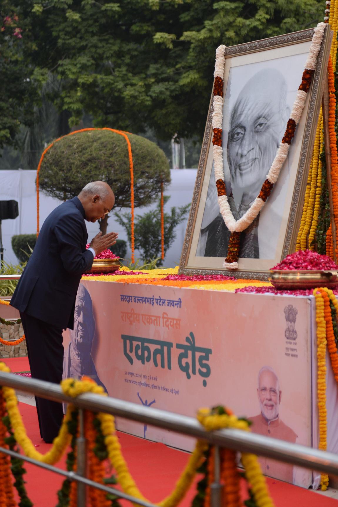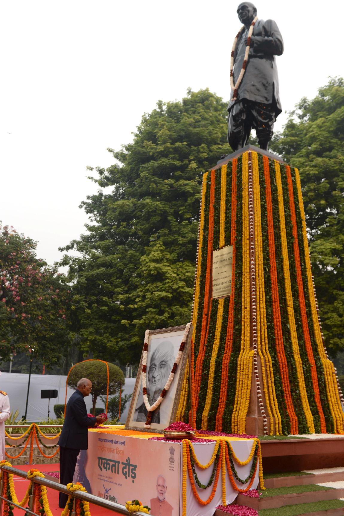 | Caption: | The President of India, Shri Ram Nath Kovind paying floral tributes at the statue of Sardar Vallabhbhai Patel on the occasion of his birth anniversary being observed as Rashtriya Ekta Diwas, in New Delhi on October 31, 2019. |