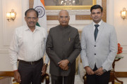 | Caption: | Shri Basant Kumar along with his son meeting with the President of India, Shri Ram Nath Kovind, at Rashtrapati Bhavan on November 01, 2019. |