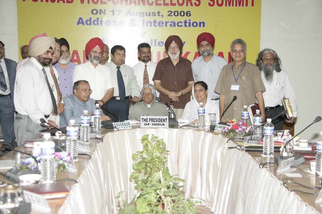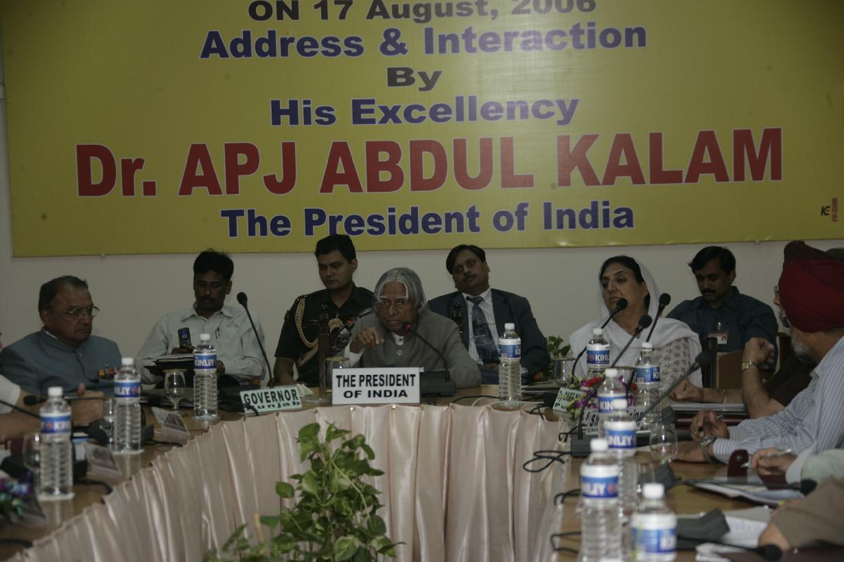 | Caption: | The President of India, Dr A P J Abdul Kalam addressing the Vice Chancellors of the Universities of Punjab at Jalandhar in Punjab on Aug 17, 2006 |
