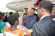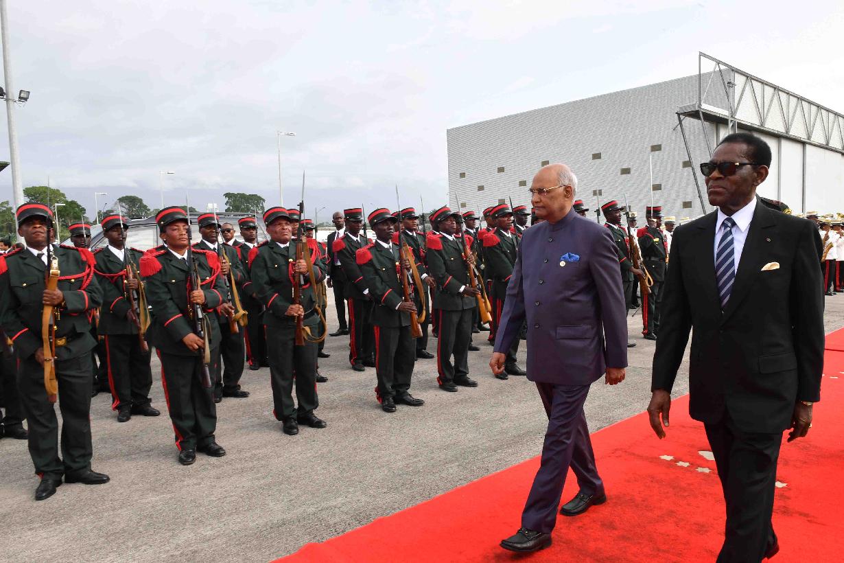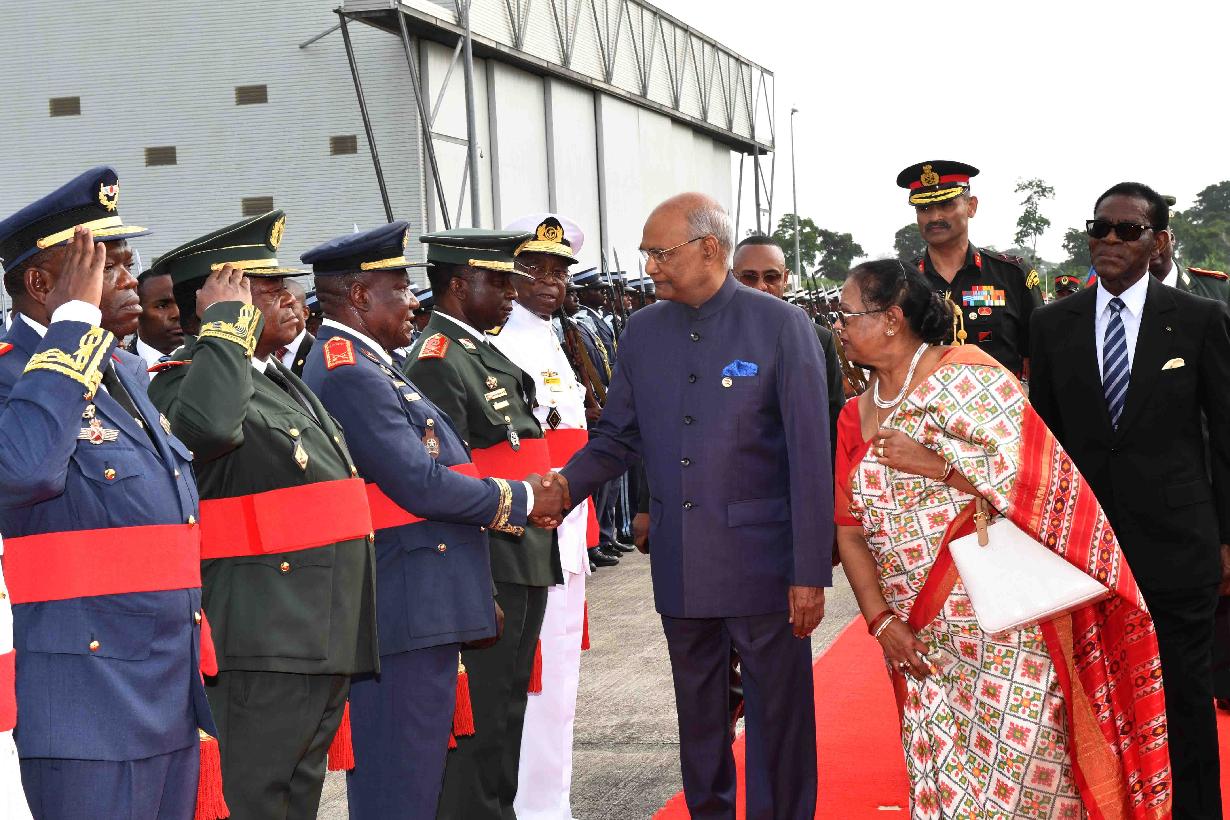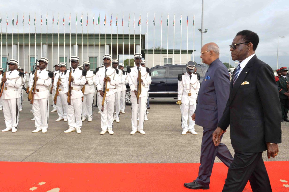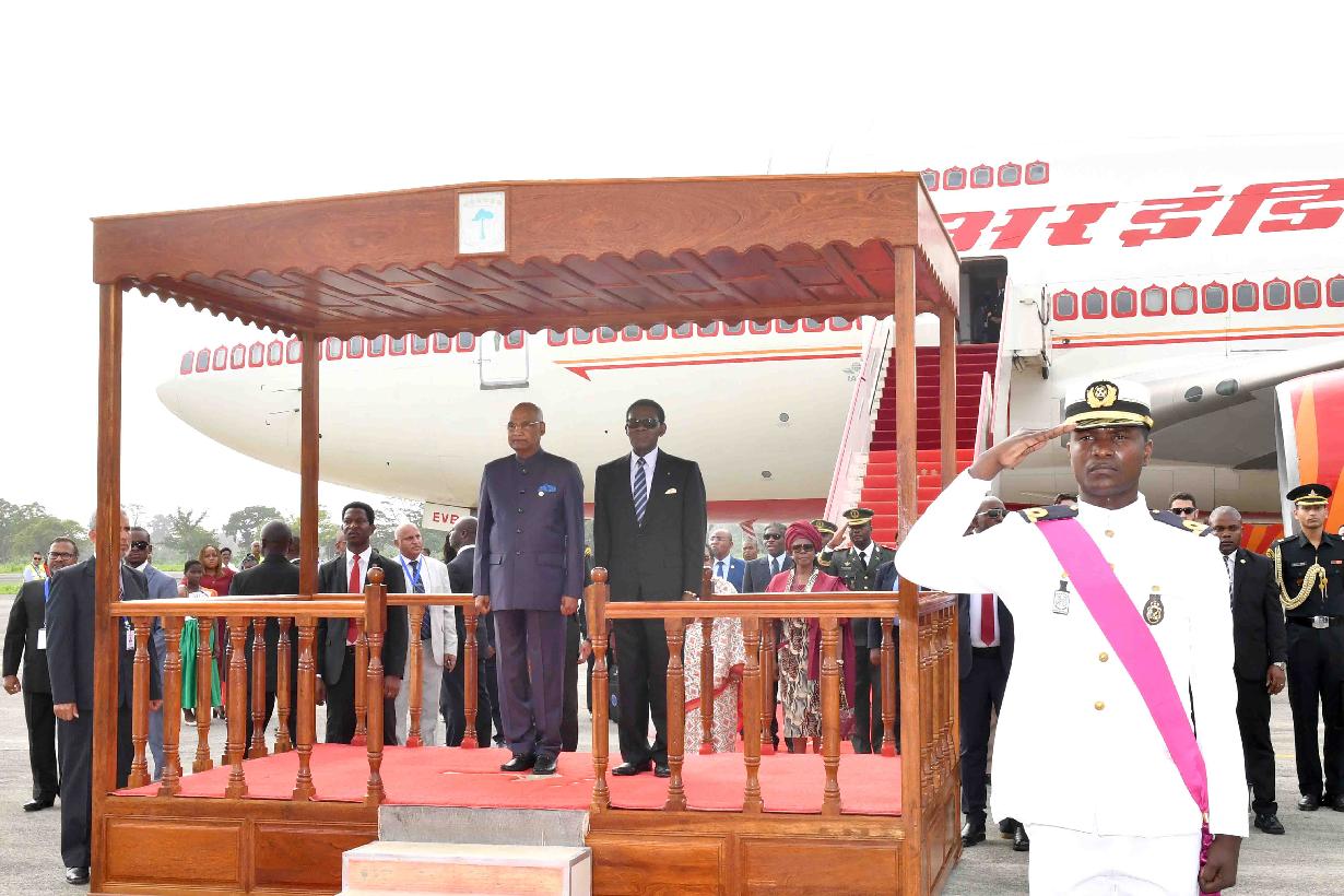 | Caption: | The President of India, Shri Ram Nath Kovind being received by the President of the Republic of Equatorial Guinea, H.E. Mr. Obiang Nguema Mbasogo and other dignitaries, on his arrival, at Malabo International Airport, in the Republic of Equatorial Guinea on April 07, 2018. |