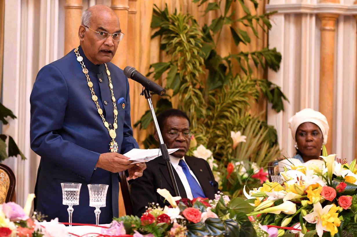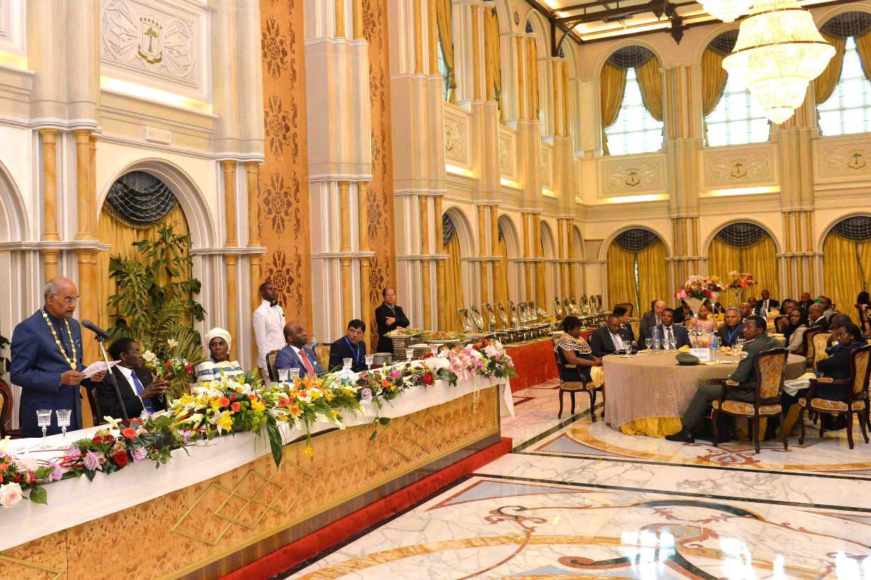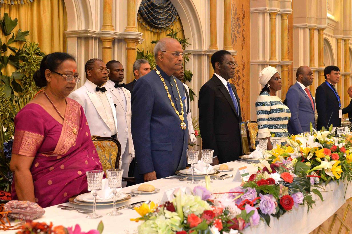 | Caption: | The President of India, Shri Ram Nath Kovind at the Banquet Lunch hosted by the President of the Republic of Equatorial Guinea, H.E. Mr. Obiang Nguema Mbasogo, at Presidential Palace, in the Republic of Equatorial Guinea on April 08, 2018. |