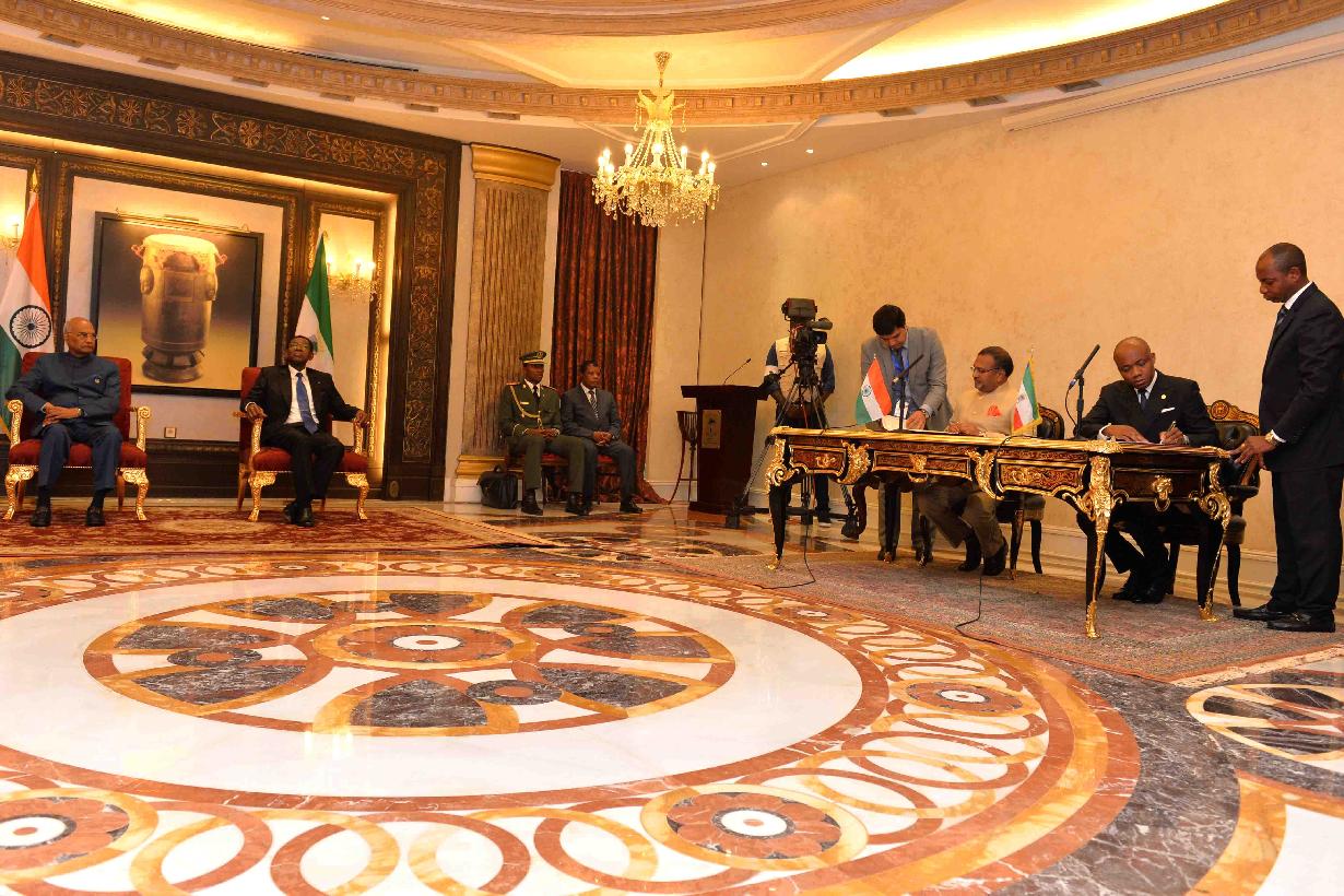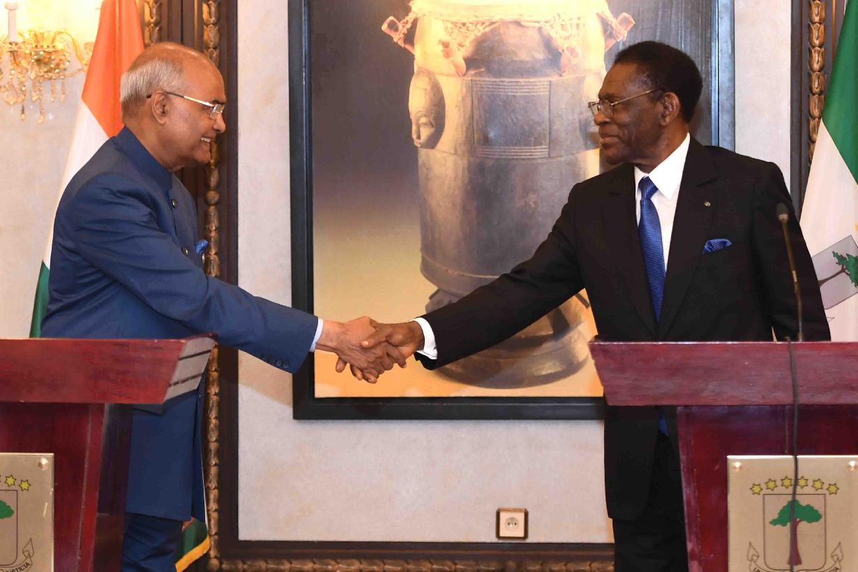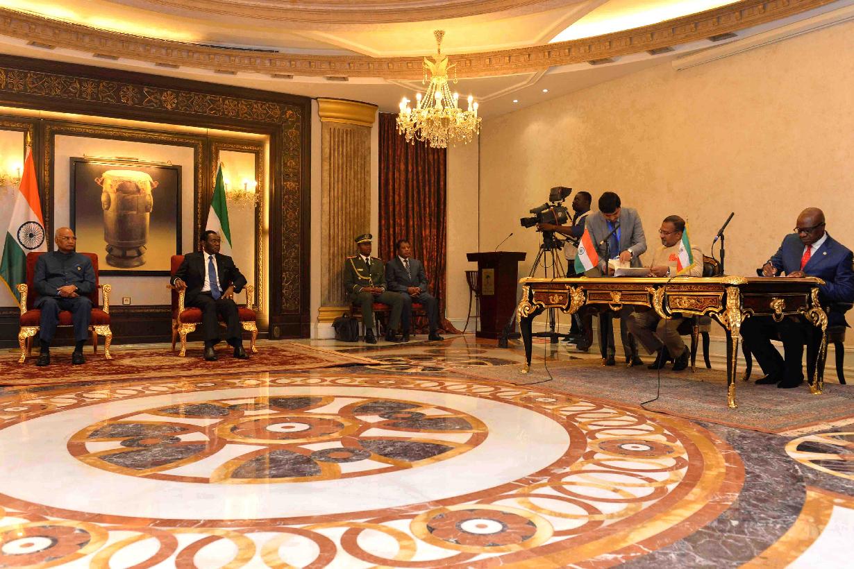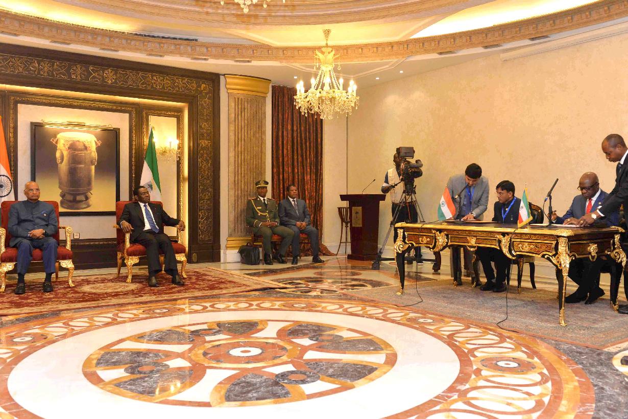 | Caption: | The President of India, Shri Ram Nath Kovind and the President of the Republic of Equatorial Guinea, H.E. Mr. Obiang Nguema Mbasogo witnessing various signing of agreements, at Presidential Palace, in the Republic of Equatorial Guinea on April 08, 2018. |