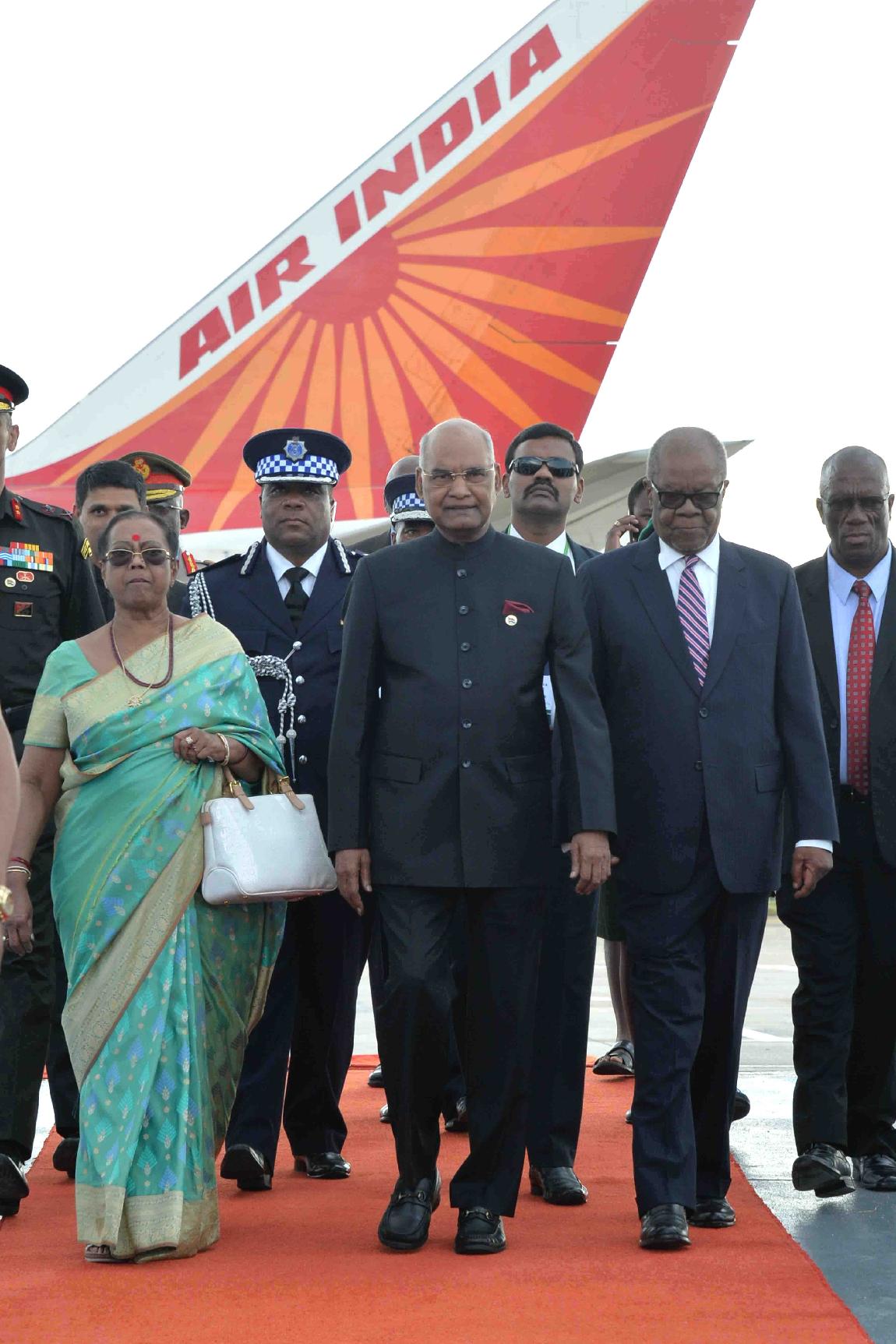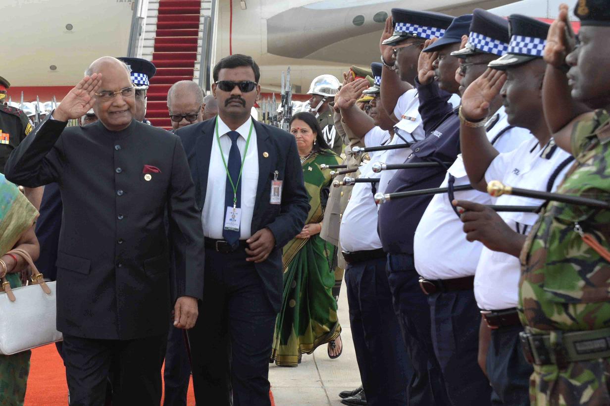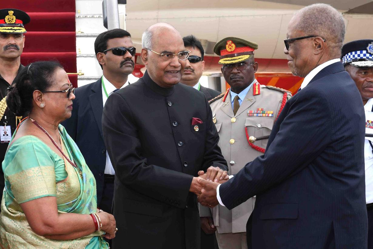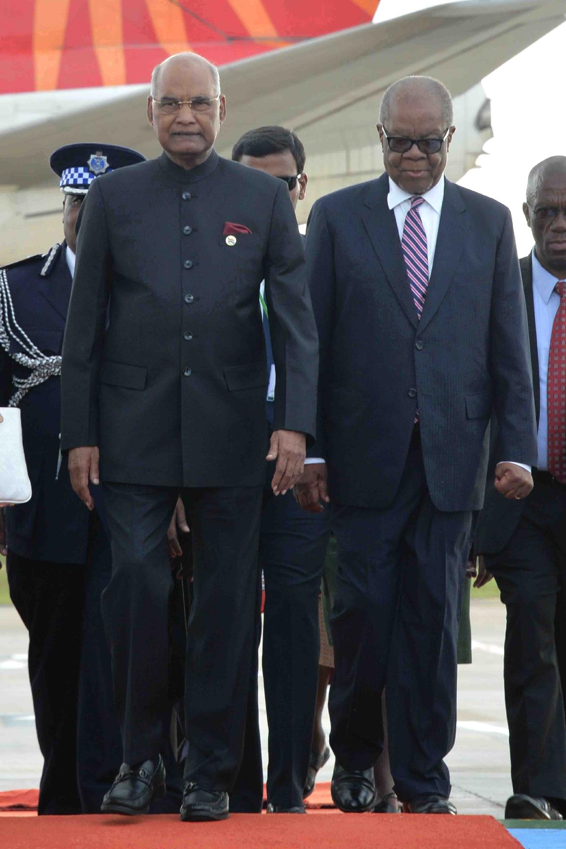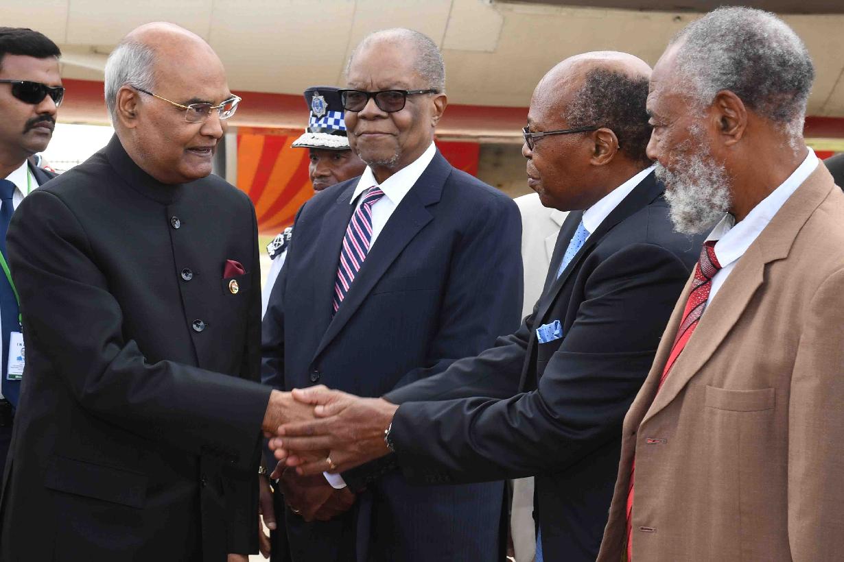 | Caption: | The President of India, Shri Ram Nath Kovind being received by the Prime Minister of Swaziland, H.E. Dr. Barnabas Sibusiso Dlamini and other dignitaries, on his arrival at King Mswati III International Airport, Shikhuphe, in Swaziland on April 09, 2018. |