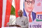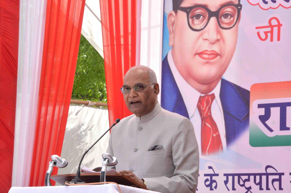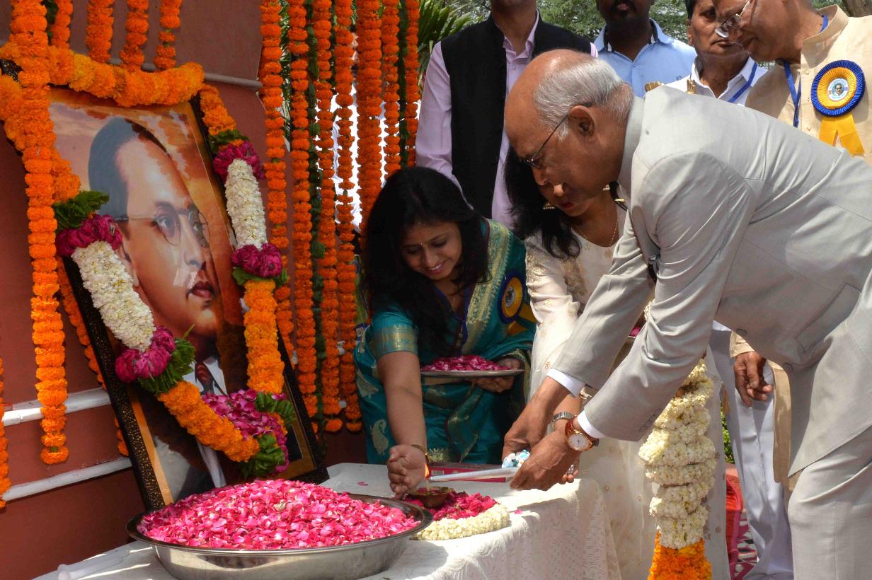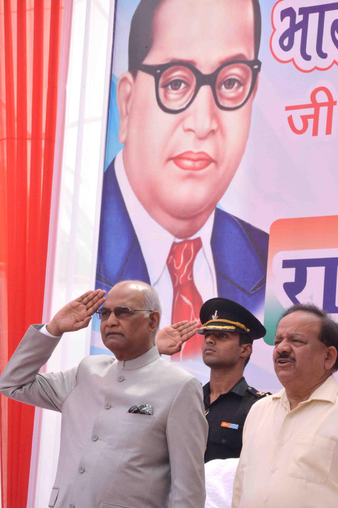 | Caption: | The President of India, Shri Ram Nath Kovind unfurling the National Flag installed by Dr. B.R. Ambedkar Memorial Foundation, Delhi, at a function, in New Delhi on April 15, 2018. |