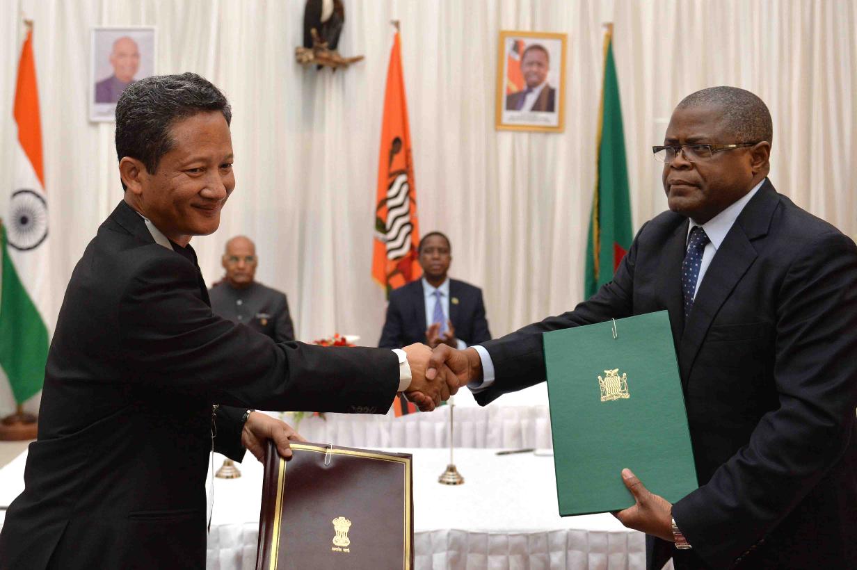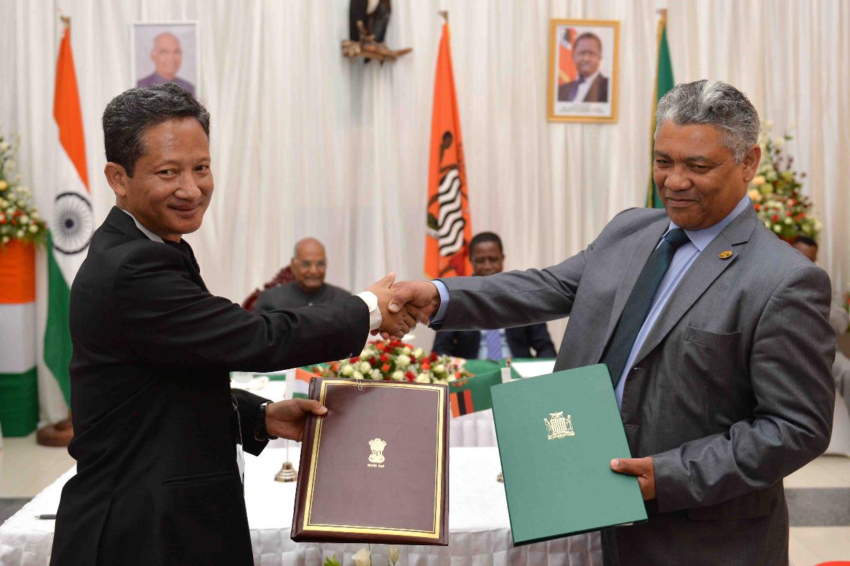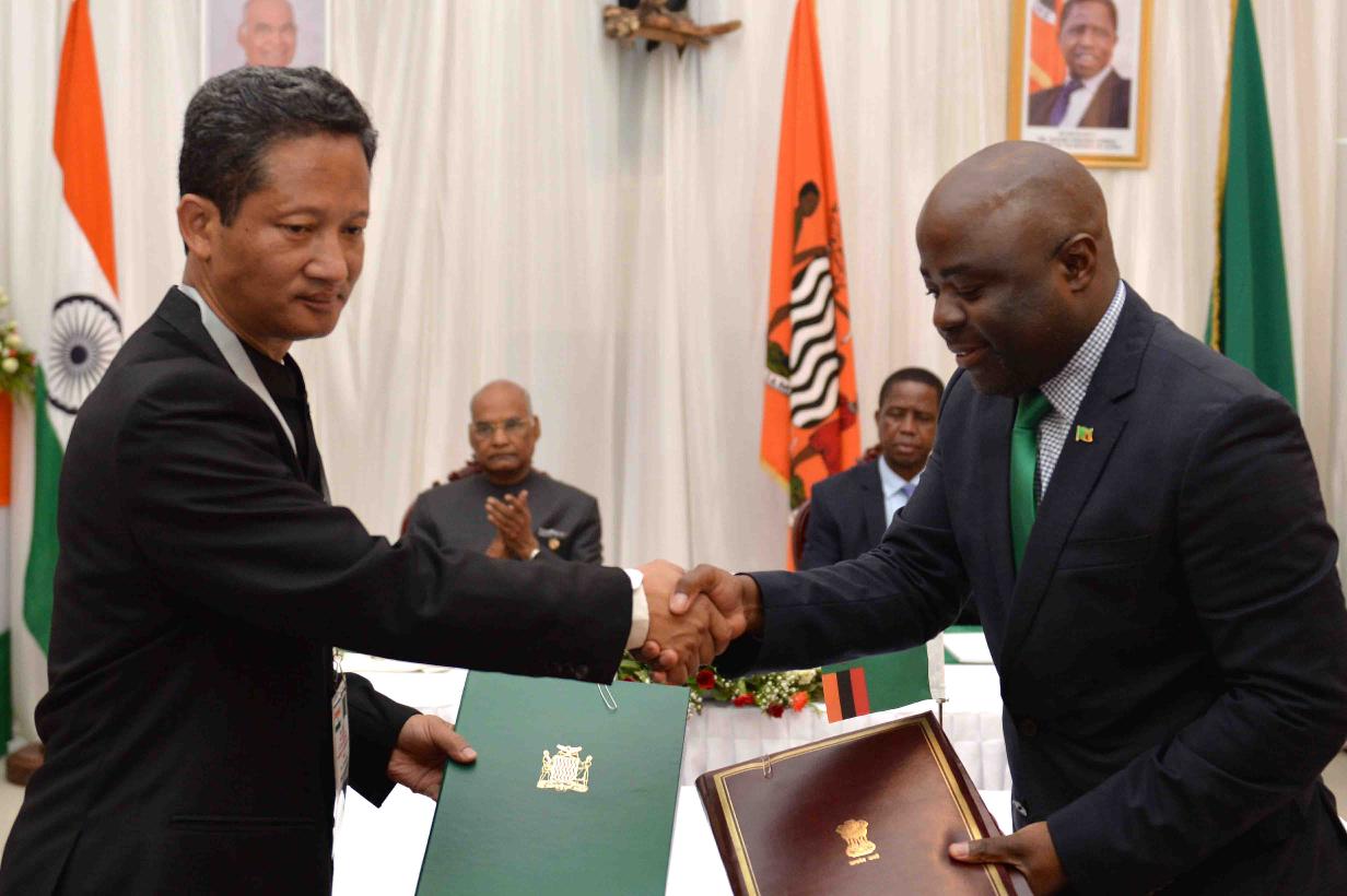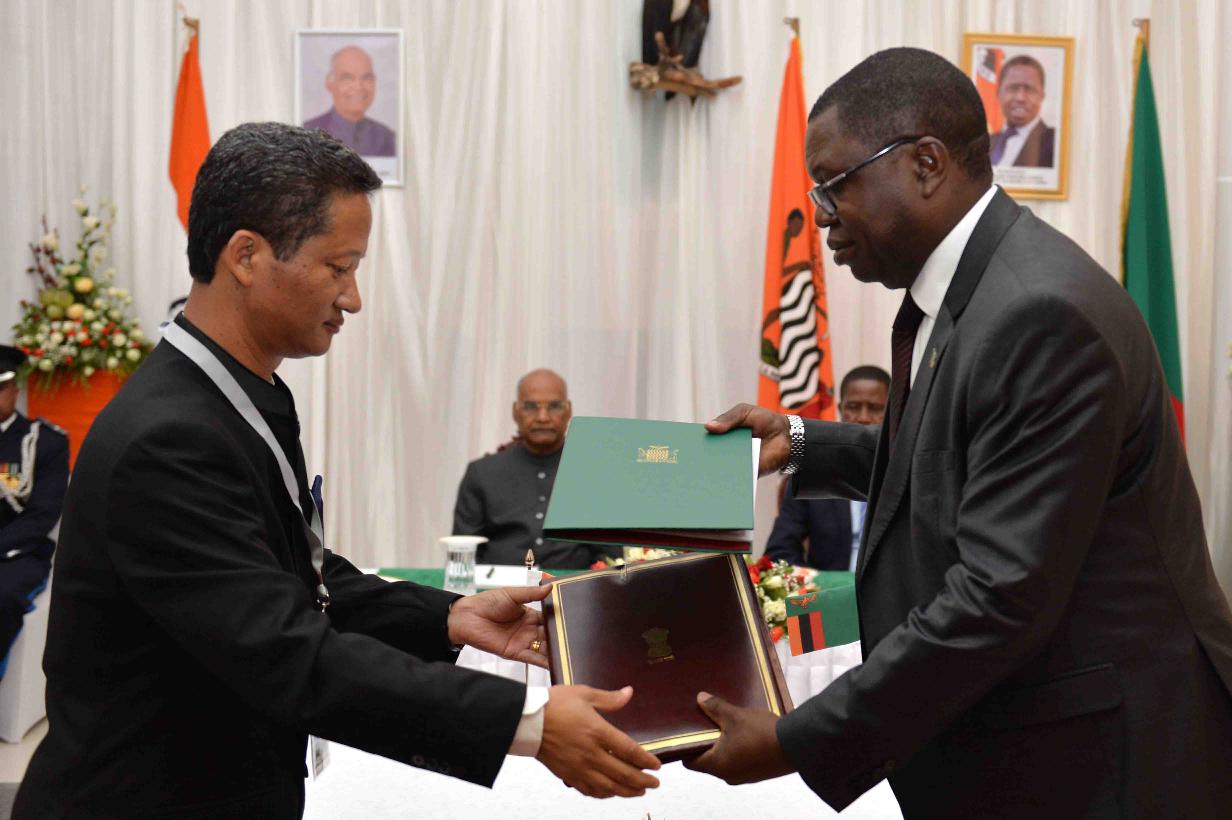 | Caption: | The President of India, Shri Ram Nath Kovind and the President of the Republic of Zambia, H.E. Mr. Edgar Chagwa Lungu witnessing the signing of agreements between two countries on double taxation avoidance |