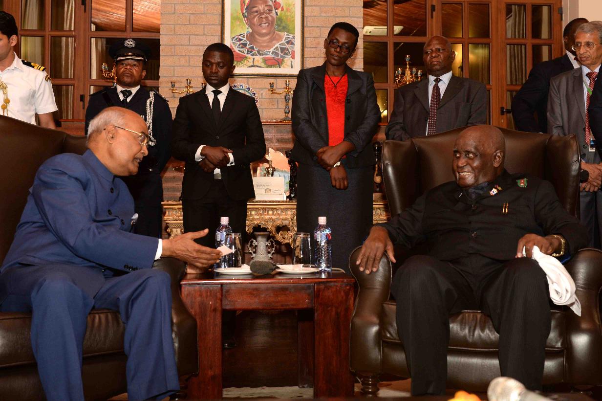 | Caption: | The President of India, Shri Ram Nath Kovind meeting with Dr. Kenneth David Kaunda at his residence, at Lusaka, in the Republic of Zambia on April 11, 2018. |