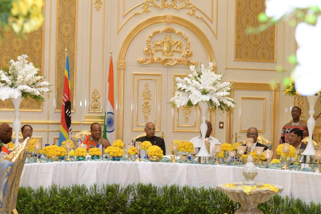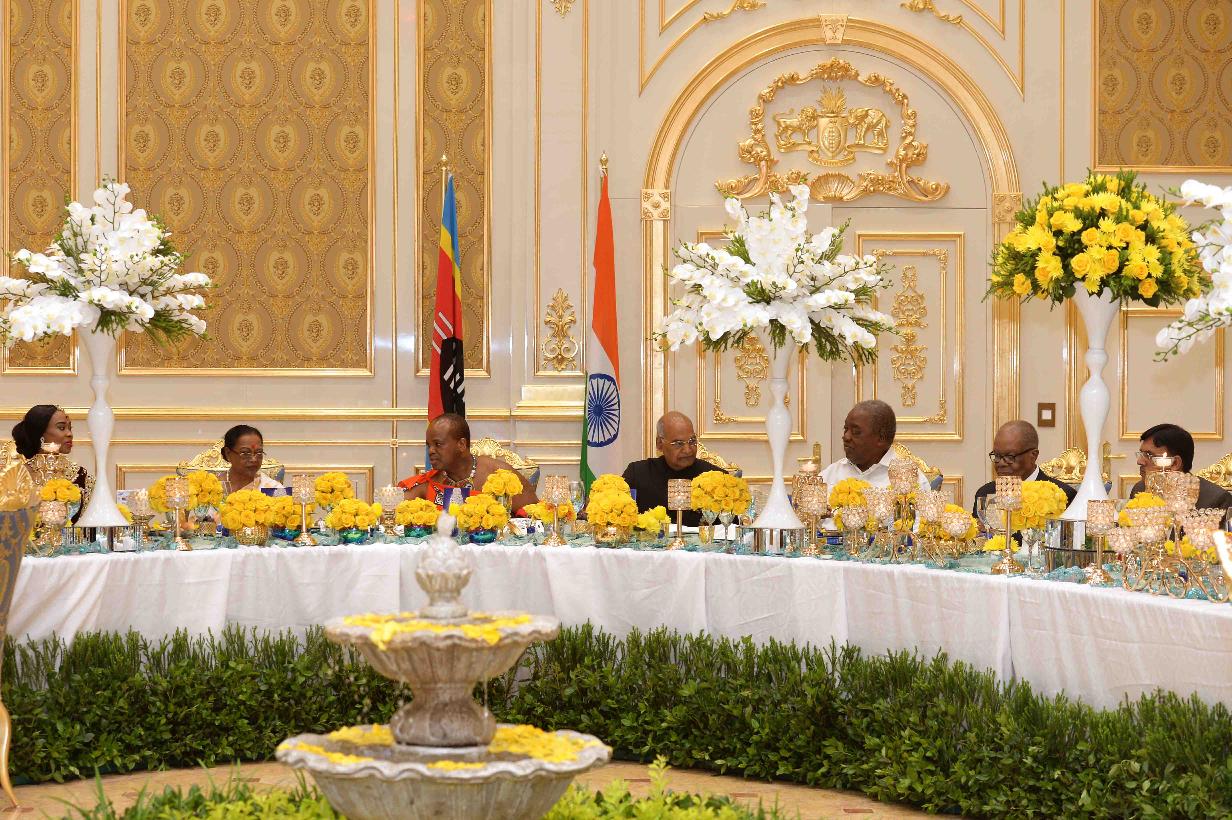 | Caption: | The President of India, Shri Ram Nath Kovind at the Banquet Hosted by His Majesty Mswati III, the King of Swaziland, at Lozitha Palace, in Swaziland on April 09, 2018. |