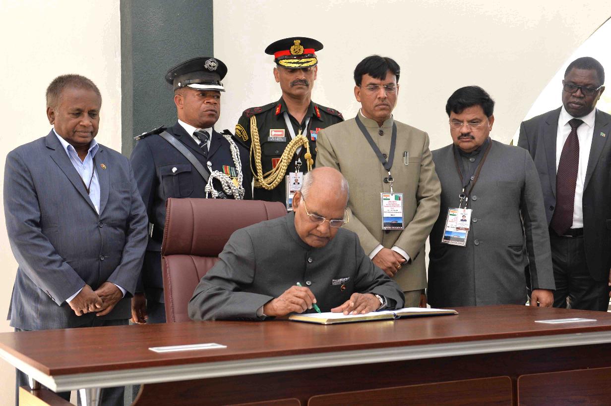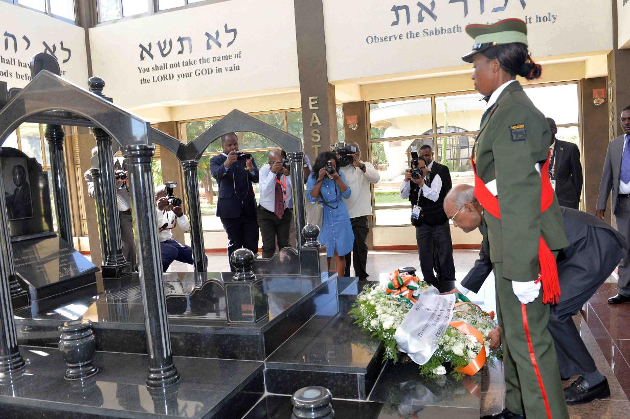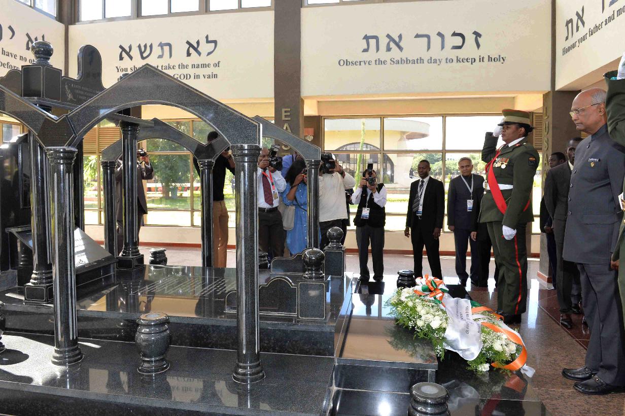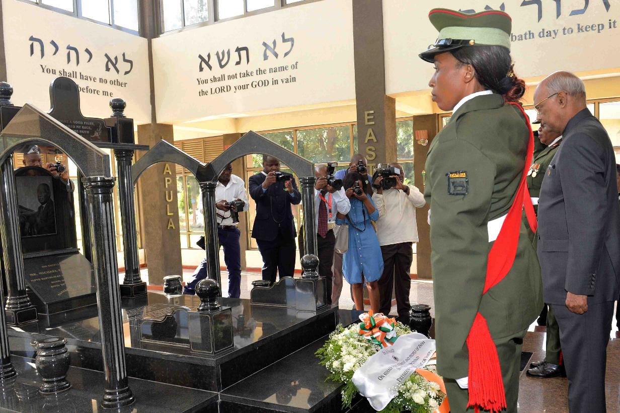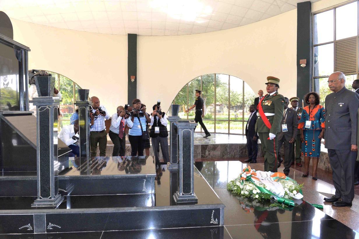 | Caption: | The President of India, Shri Ram Nath Kovind paying tributes to three former Presidents of Zambia Frederick Chiluba, Levy Mwanawasa and Micheal Sata, during his visit at Embassy Park Presidential Memorial, at Lusaka, in the Republic of Zambia on April 11, 2018. |