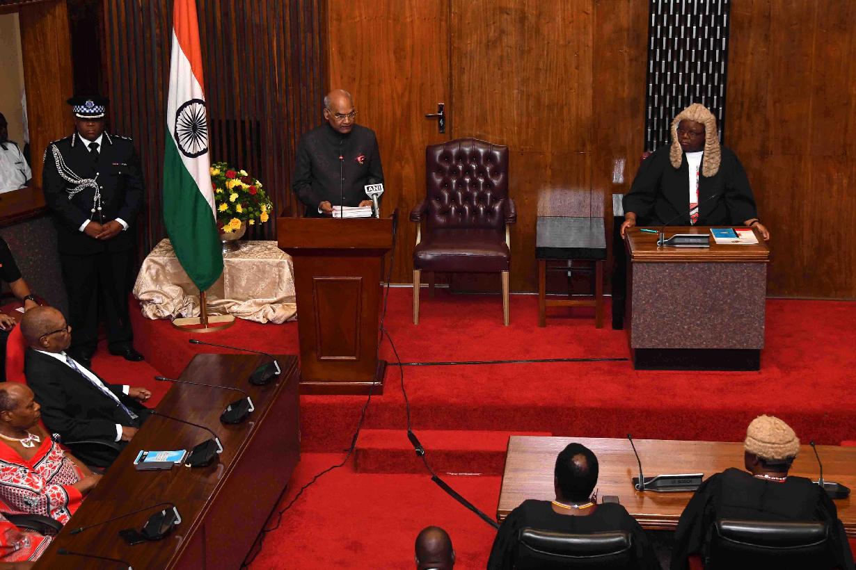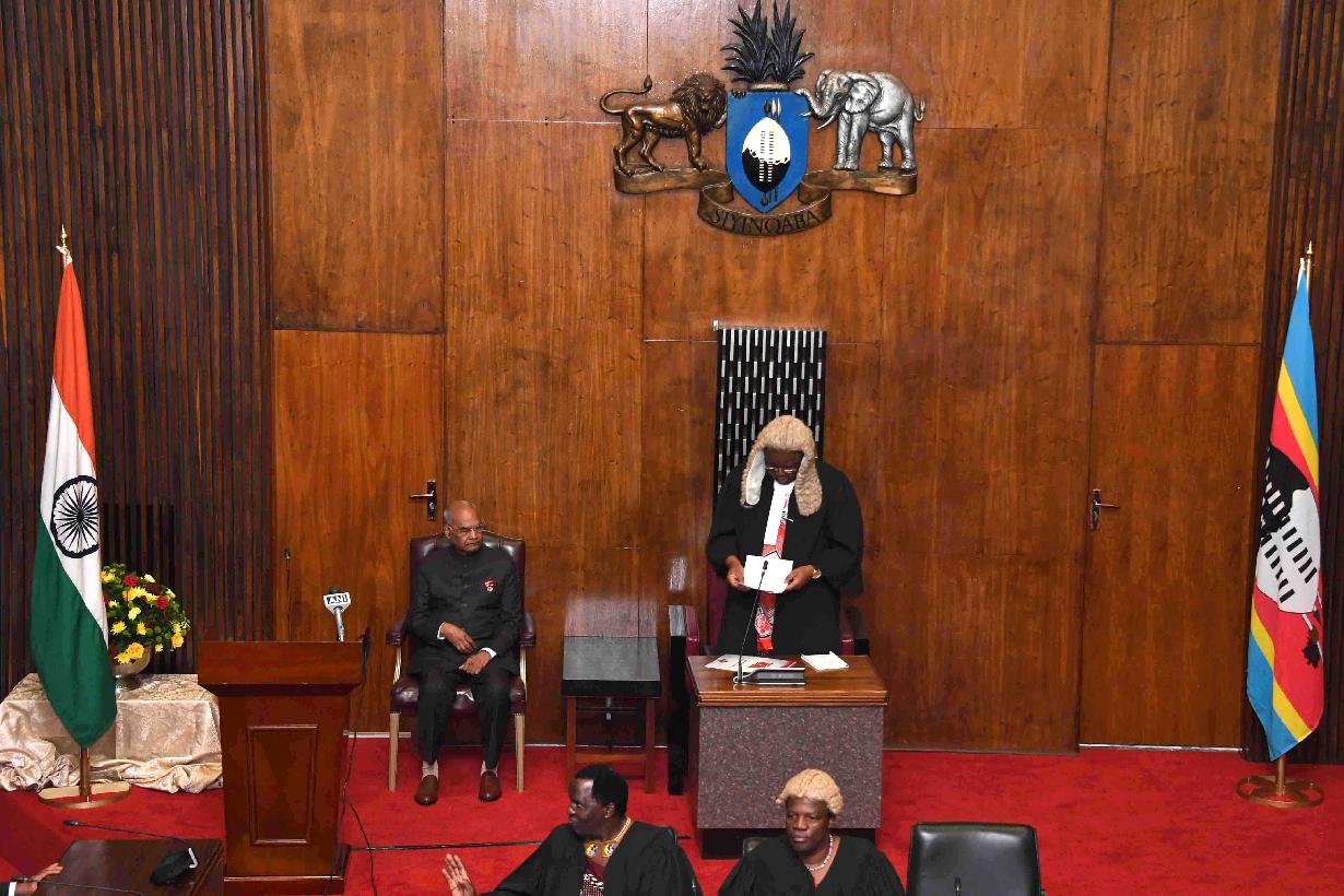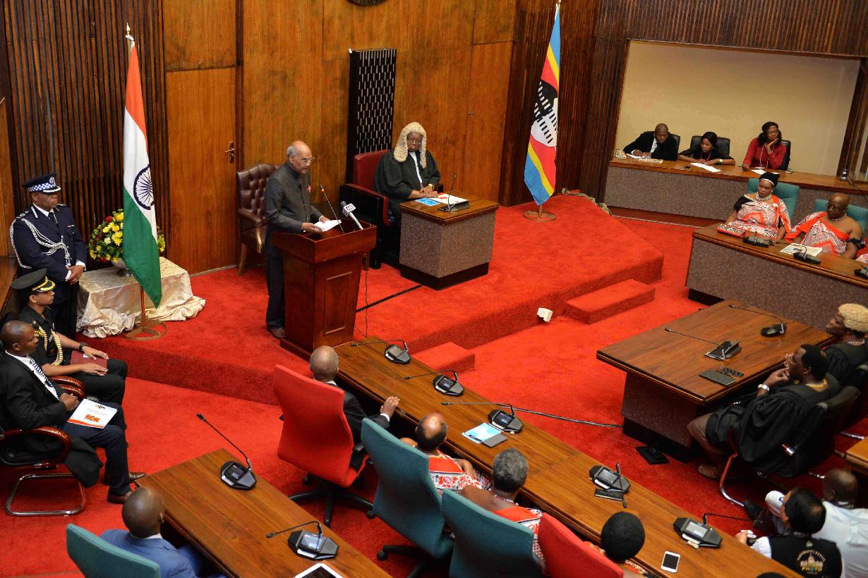 | Caption: | The President of India, Shri Ram Nath Kovind addressing the members of the Parliament of Swaziland, in Shikhuphe, Swaziland on April 10, 2018. |