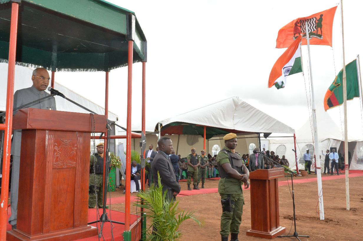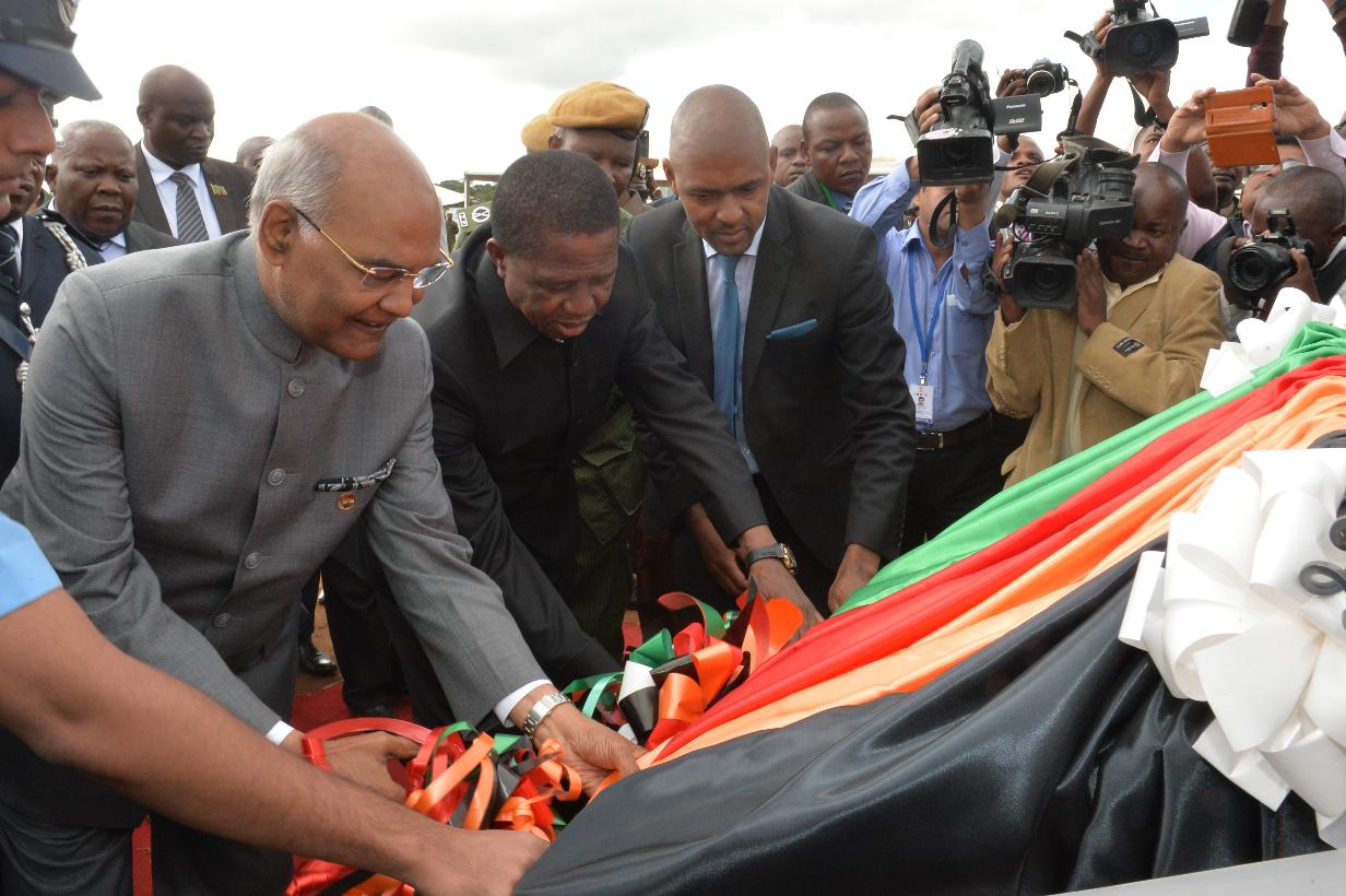 | Caption: | The President of India, Shri Ram Nath Kovind along with H.E. Mr. Edgar Chagwa Lungu, the President of Zambia during the ground breaking ceremony of Lusaka Traffic Decongestion Project, at Makeni, in the Republic of Zambia on April 12, 2018. |