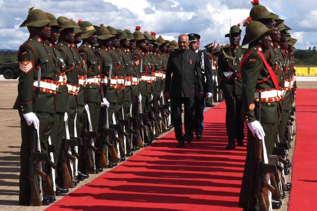| Caption: | The President of India, Shri Ram Nath Kovind inspecting the Guard of Honour, on his arrival, at Kenneth Kaunda International Airport, Lusaka, in the Republic of Zambia on April 10, 2018. |