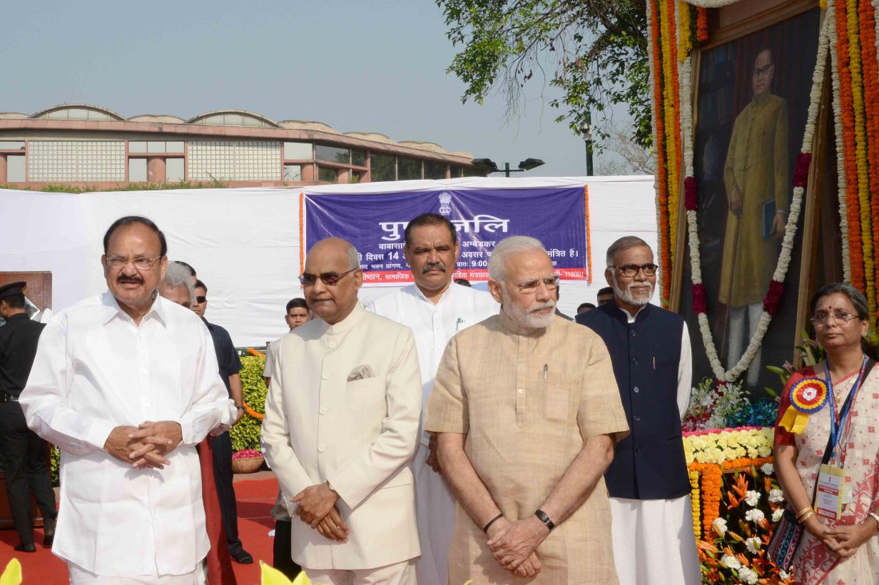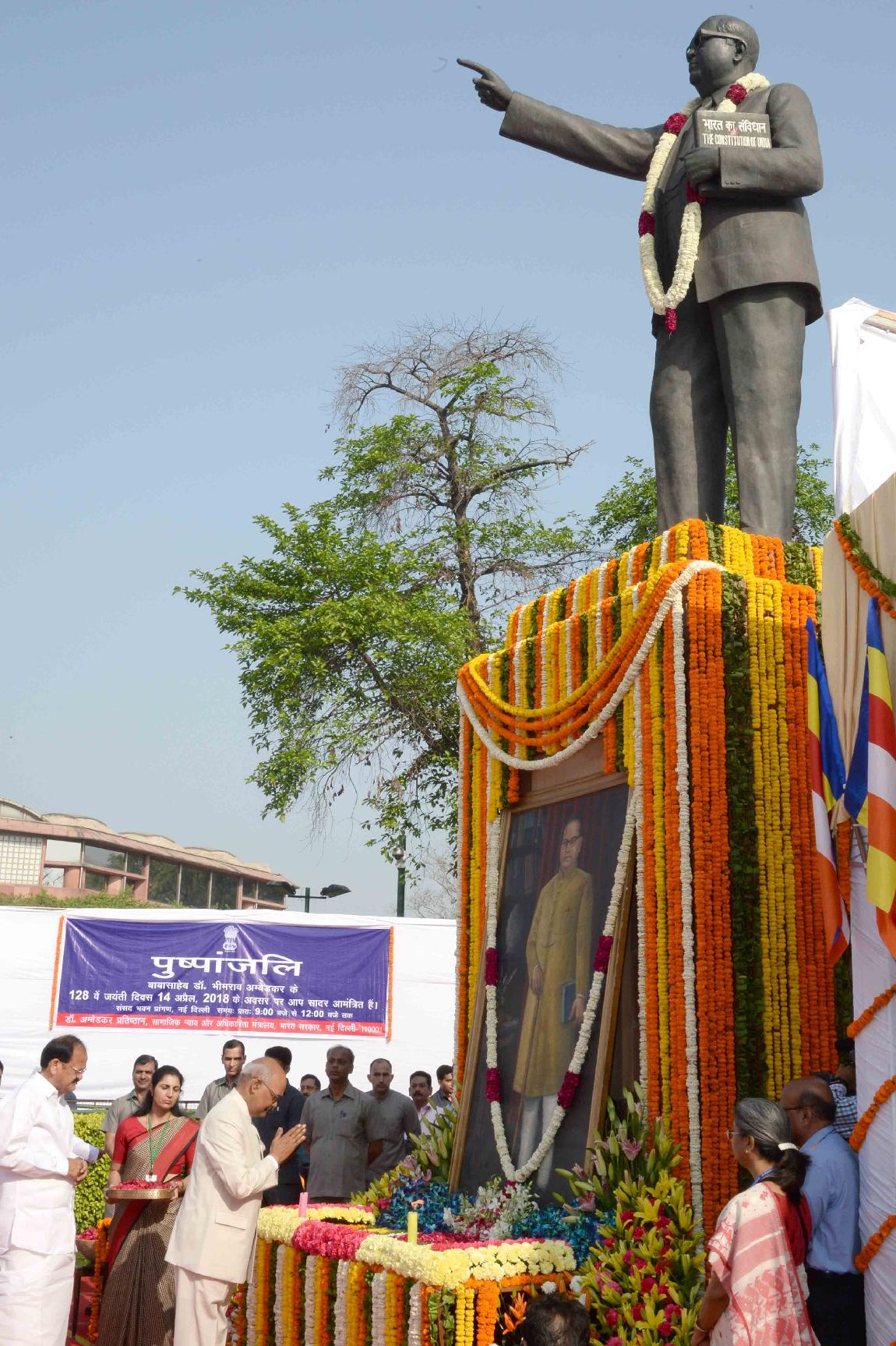 | Caption: | The President of India, Shri Ram Nath Kovind paying floral tributes at the statue of Babasaheb Dr. B.R. Ambedkar on the occasion of his Birth Anniversary, in New Delhi on April 14, 2018. |