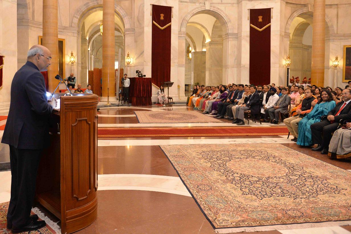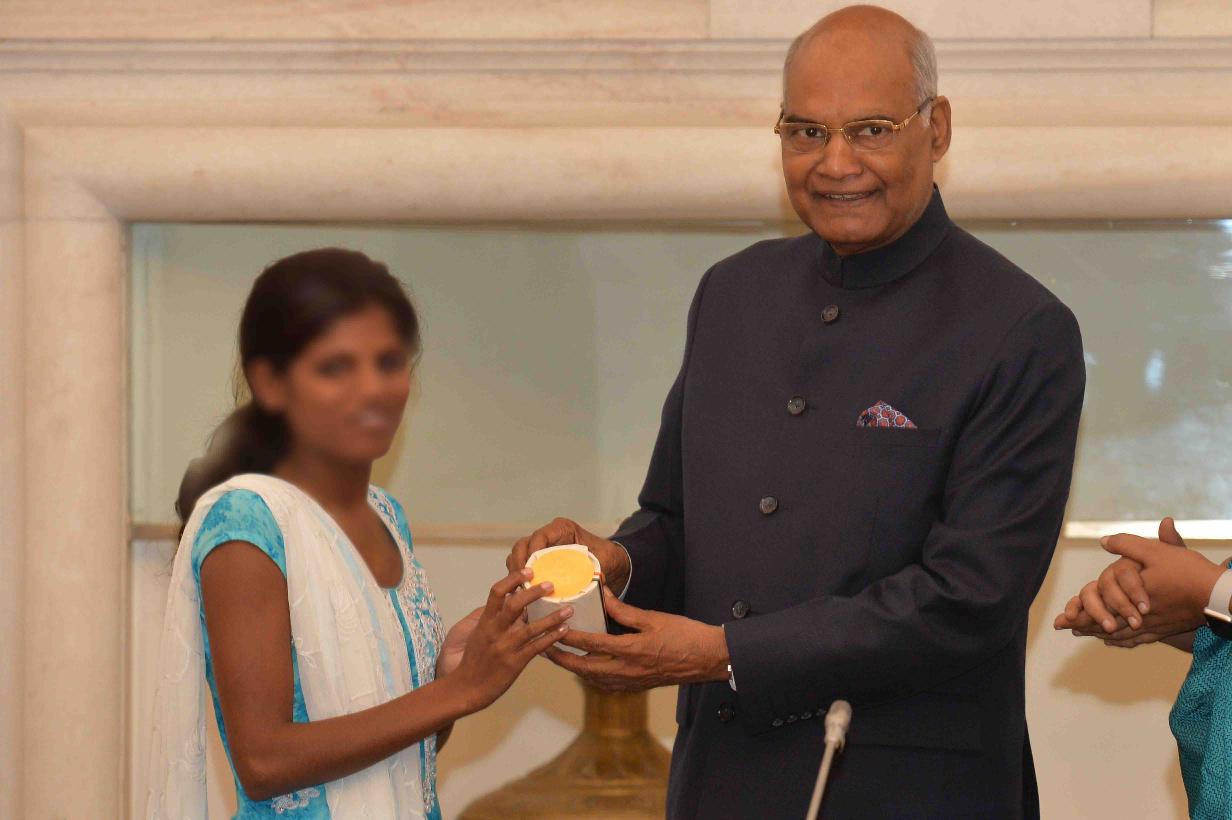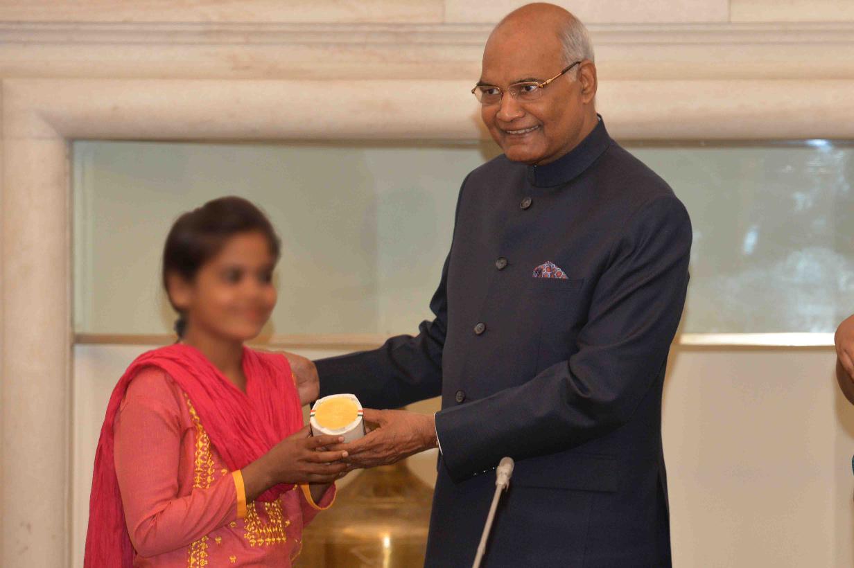 | Caption: | The President of India, Shri Ram Nath Kovind meeting with the survivors of human trafficking and launching the Skills Training Programme for young survivors, on the occasion of International Women's Day, at Rastrapati Bhavan on March 08, 2018. |
