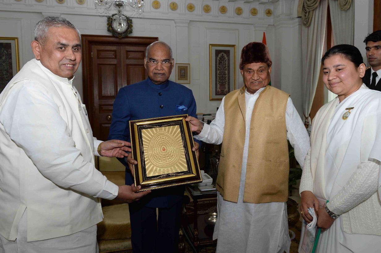 | Caption: | The former Education Minister, Uttar Pradesh, Shri Amarjit Singh Jansevak along with BK Mrityunjay and BK Shivika meeting with the President of India, Shri Ram Nath Kovind, at Rashtrapati Bhavan on January 12, 2018. |