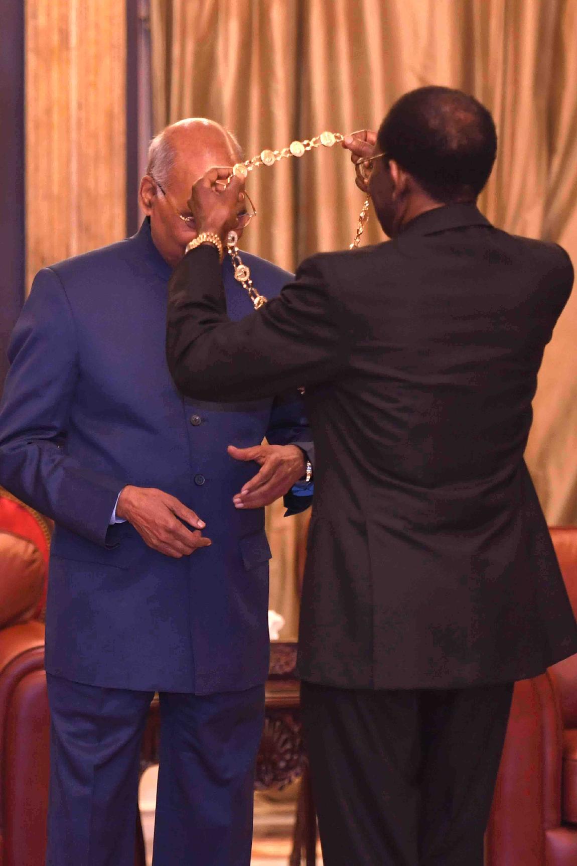 | Caption: | The President of India, Shri Ram Nath Kovind conferred with the Condecoracion (highest honour accorded to a non-citizen by the government of Equatorial Guinea and previously given to select Heads of State from friendly countries) by the President of the Republic of Equatorial Guinea, H.E. Mr. Obiang Nguema Mbasogo, at Presidential Palace, in the Republic of Equatorial Guinea on April 08, 2018. |