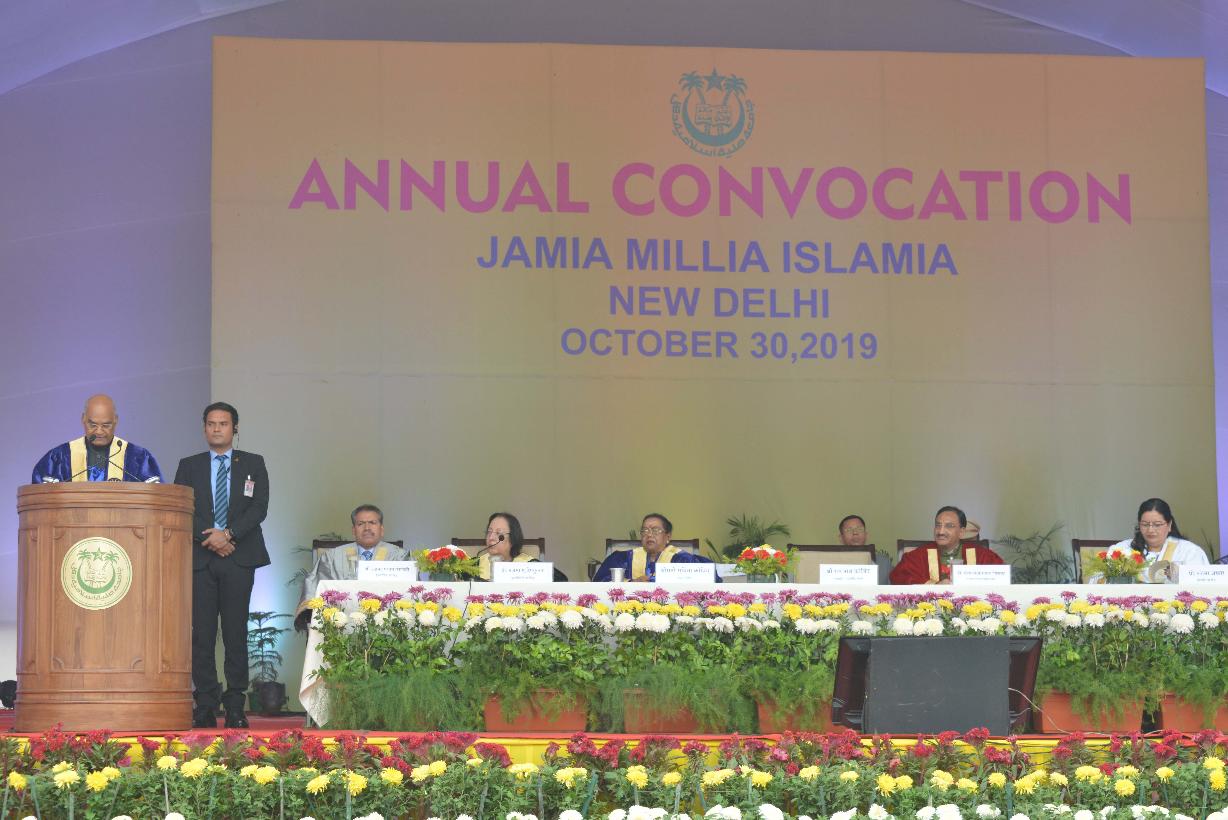| Caption: | The President of India, Shri Ram Nath Kovind gracing the Annual Convocation of Jamia Millia Islamia, in New Delhi on October 30, 2019. |