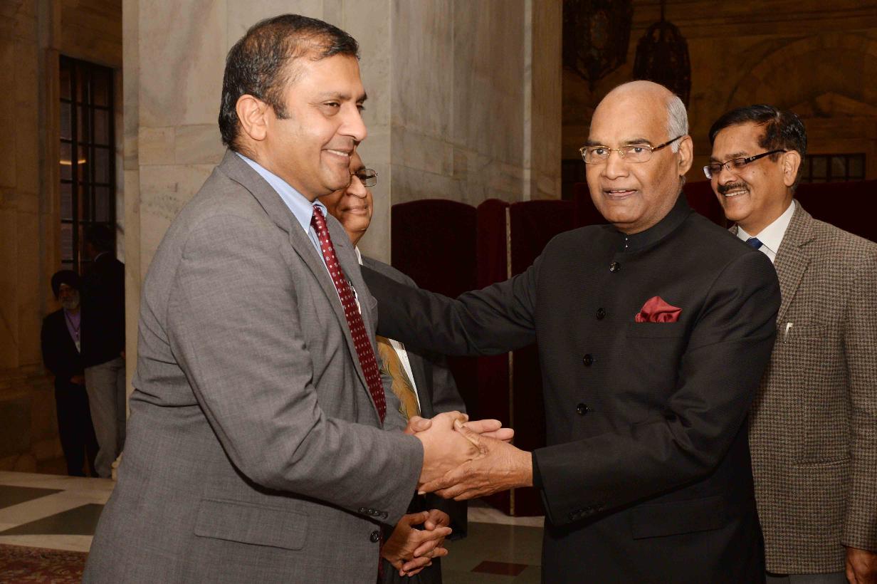 | Caption: | Shri Sanjeev Joshipura, Executive Director with others from Indiaspora meeting with the President of India, Shri Ram Nath Kovind, at Rashtrapati Bhavan on January 16, 2018. |