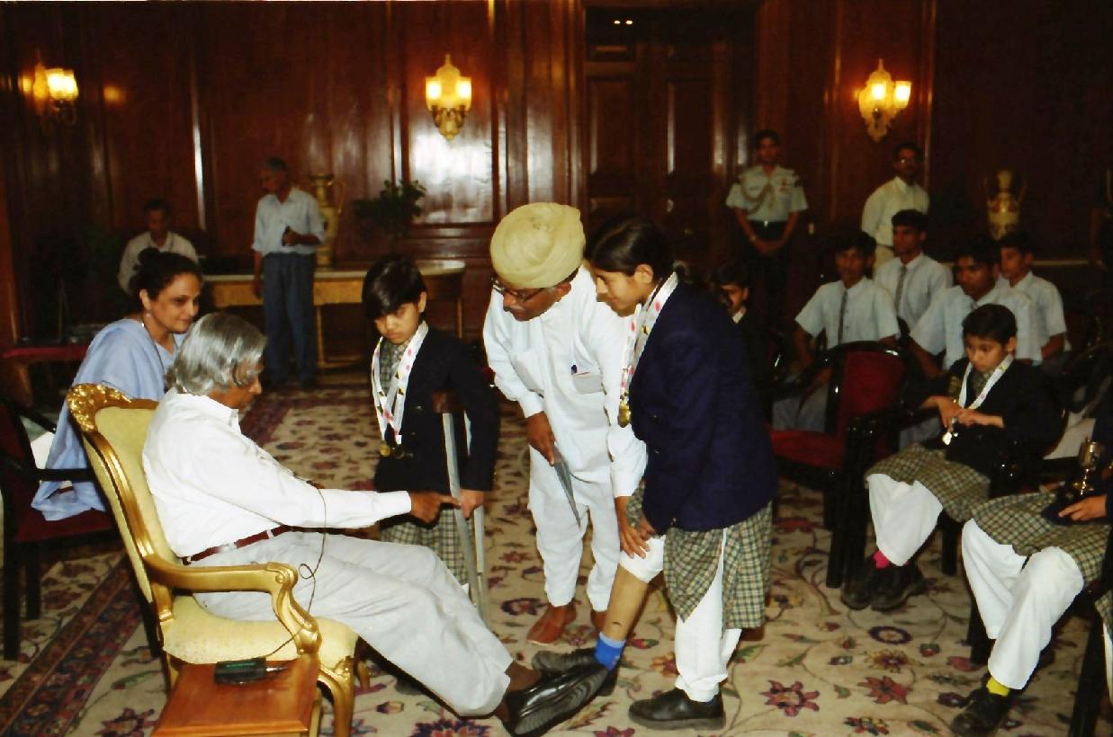 | Caption: | The President of India, Dr A P J Abdul Kalam Participants of Disability Sport England along with their Escorts and Office Bearers of Sucheta Kriplani Shiksha Niketan Jodhpur at the Committee Room of Rashtrapati Bhavan In New Delhi on May 26, 2003 |
