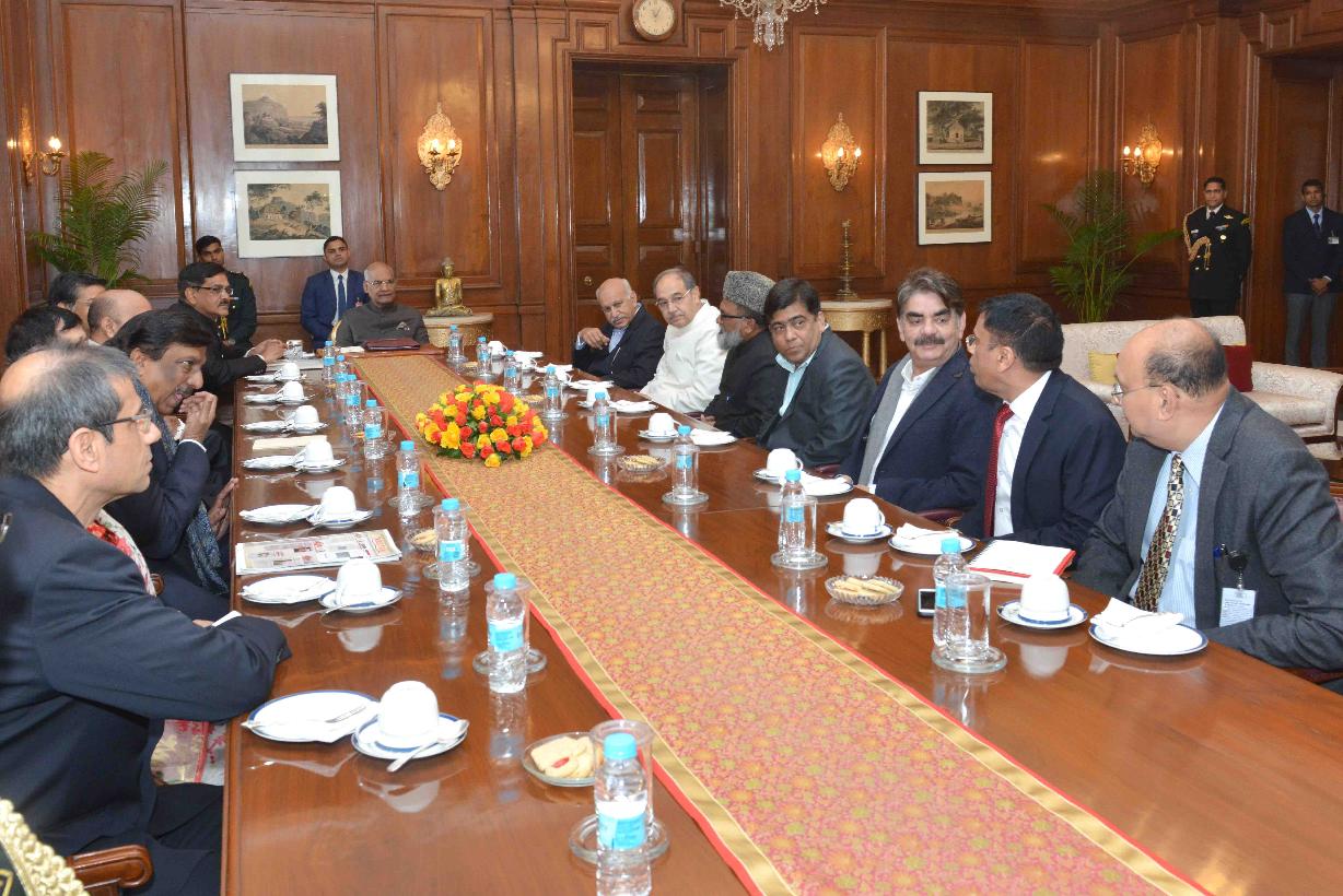 | Caption: | The President of India, Shri Ram Nath Kovind meeting with Intellectuals, at Rashtrapati Bhavan on January 19, 2018. |