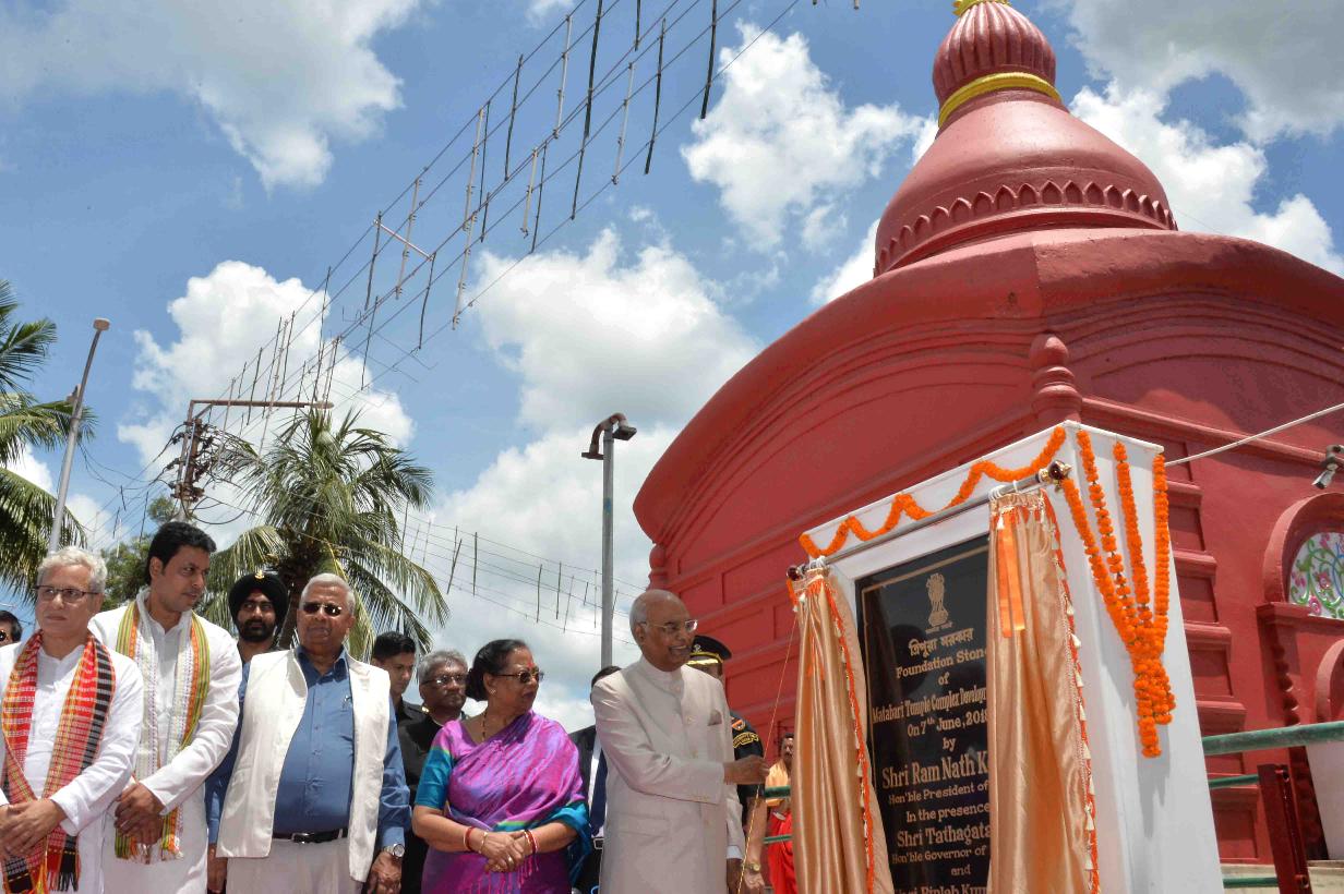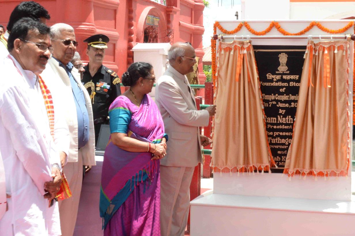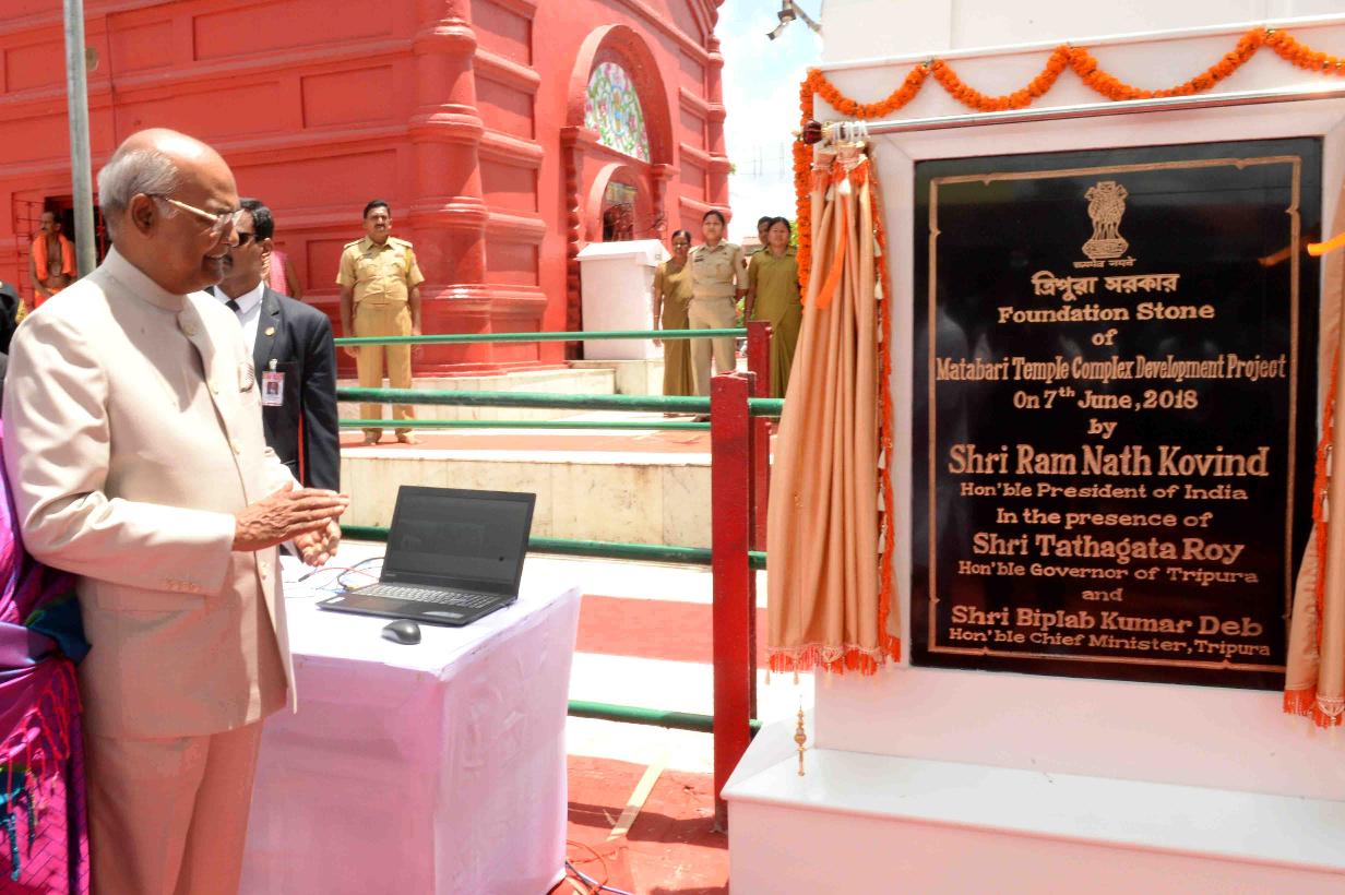 | Caption: | The President of India, Shri Ram Nath Kovind laying the foundation stone for the re-development of Matabari Temple complex, at Udaipur, in Tripura on June 07, 2018. |