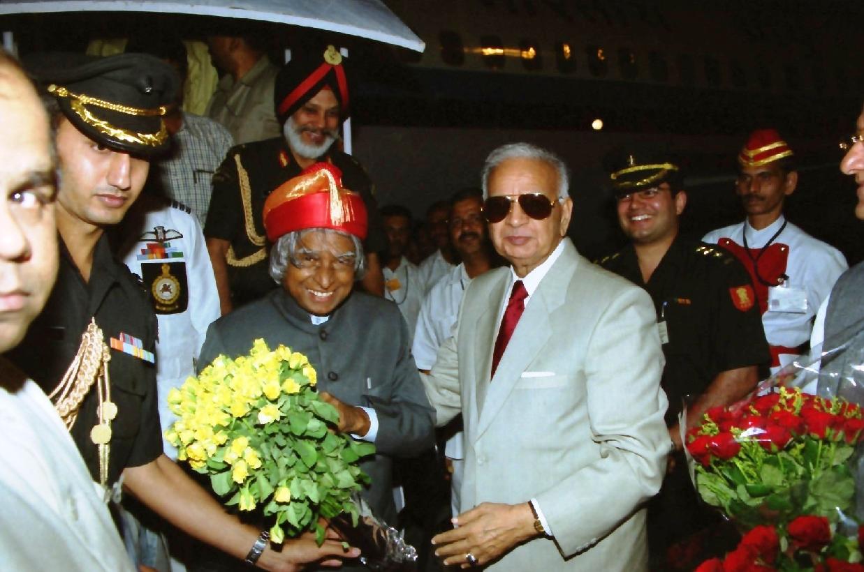 | Caption: | The President of India, Dr A P J Abdul Kalam being welcomed by the Governor of Maharashtra, Shri Mohammed Fazal at Pune and Satara in Maharashtra on May 27, 2003 |