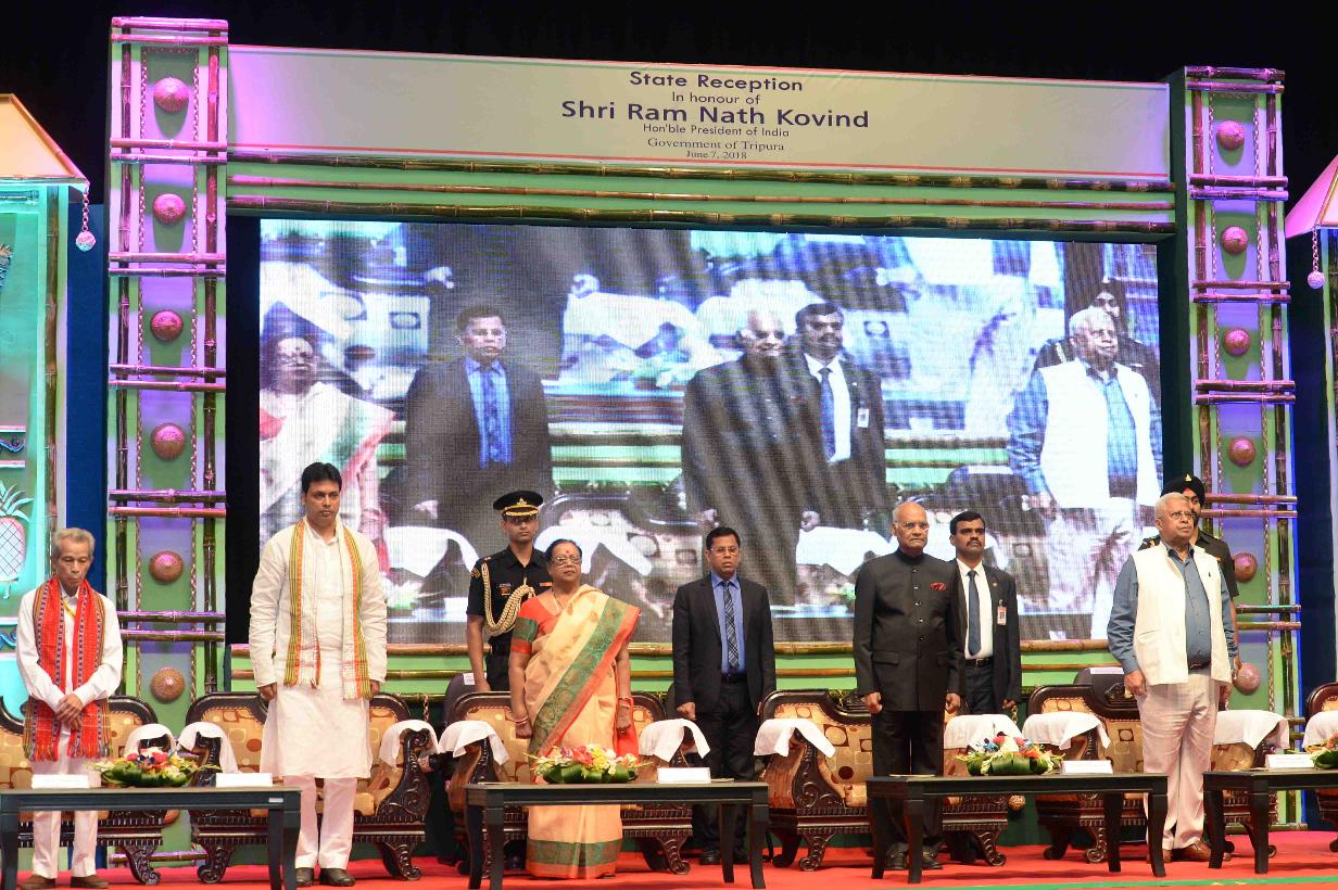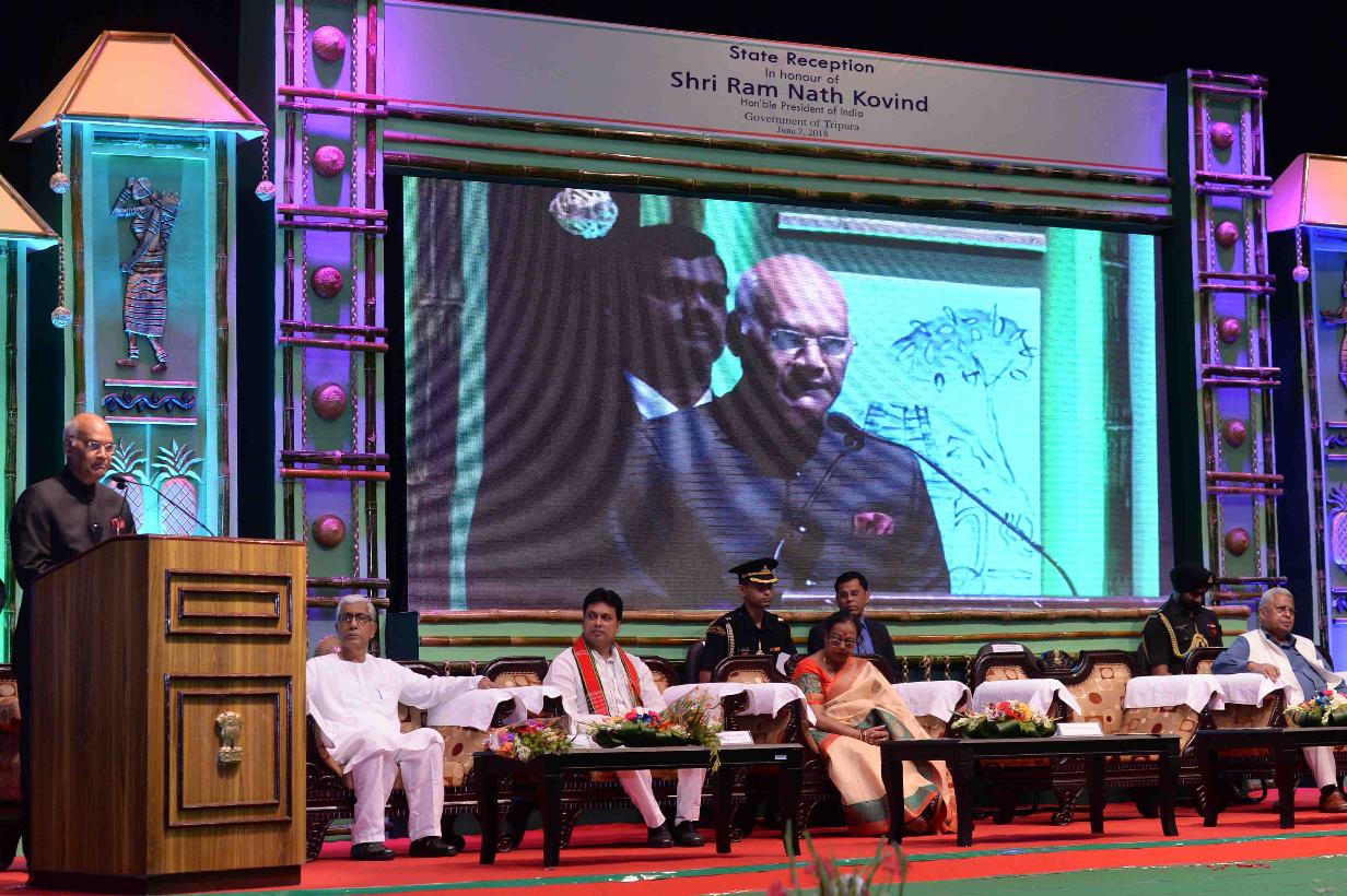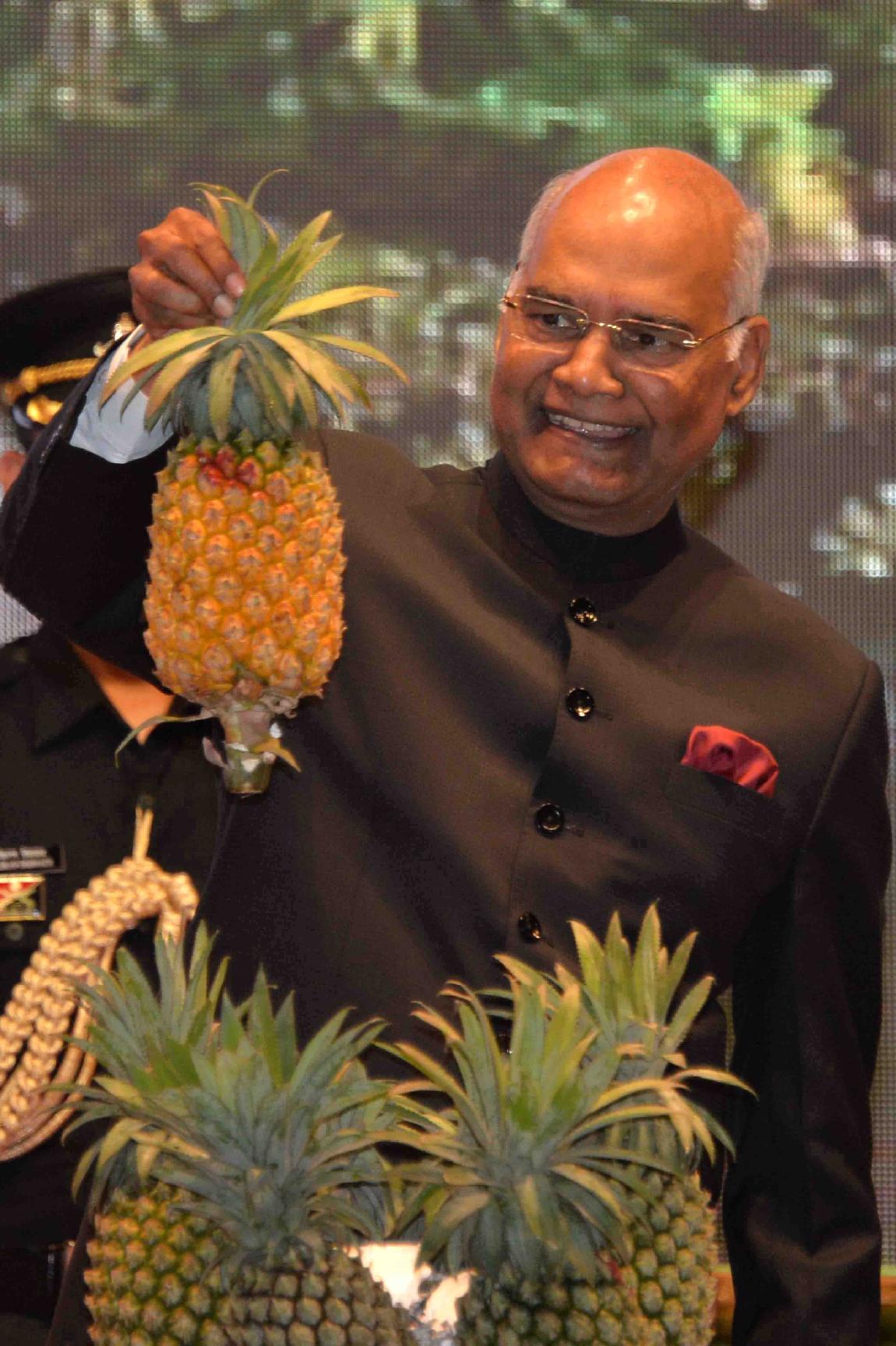 | Caption: | The President of India, Shri Ram Nath Kovind attending the civic reception hosted for him by the state government of Tripura and declaring the "Queen Pineapple" as the state fruit of Tripura, in Agartala on June 07, 2018. |