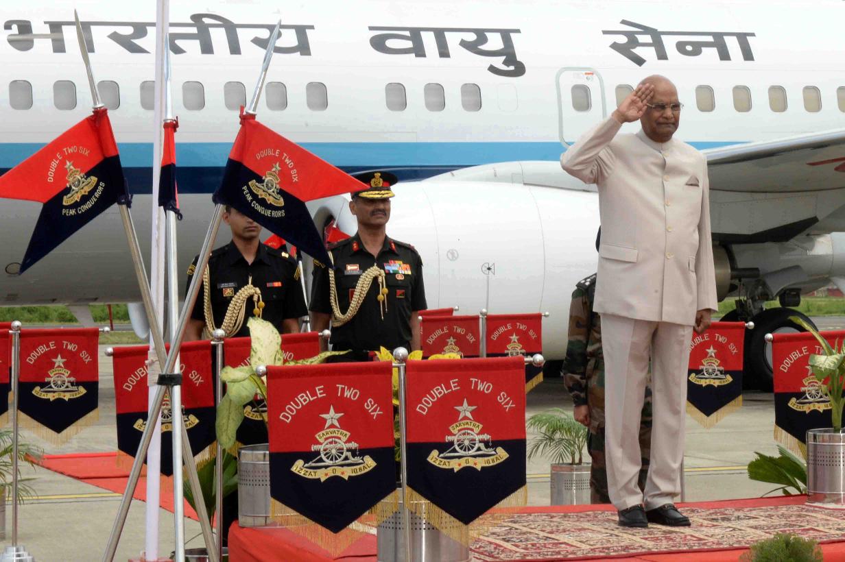 | Caption: | The President of India, Shri Ram Nath Kovind inspecting the Guard of Honour, at Agartala Airport, in Tripura on June 07, 2018. |