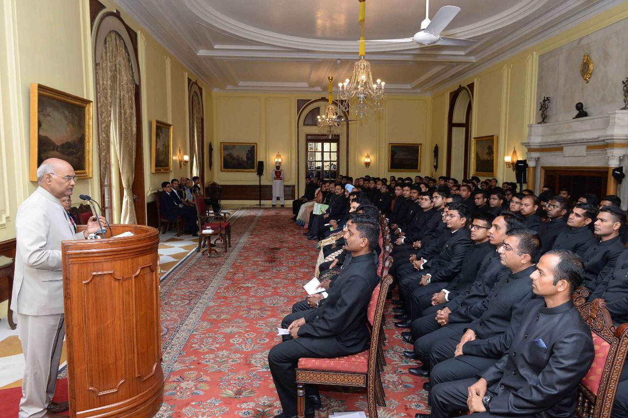 | Caption: | The President of India, Shri Ram Nath Kovind meeting with probationers of the Indian Forest Service (2017 batch) from the Indira Gandhi National Forest Academy, Dehradun, at Rashtrapati Bhavan on July 23, 2018. |