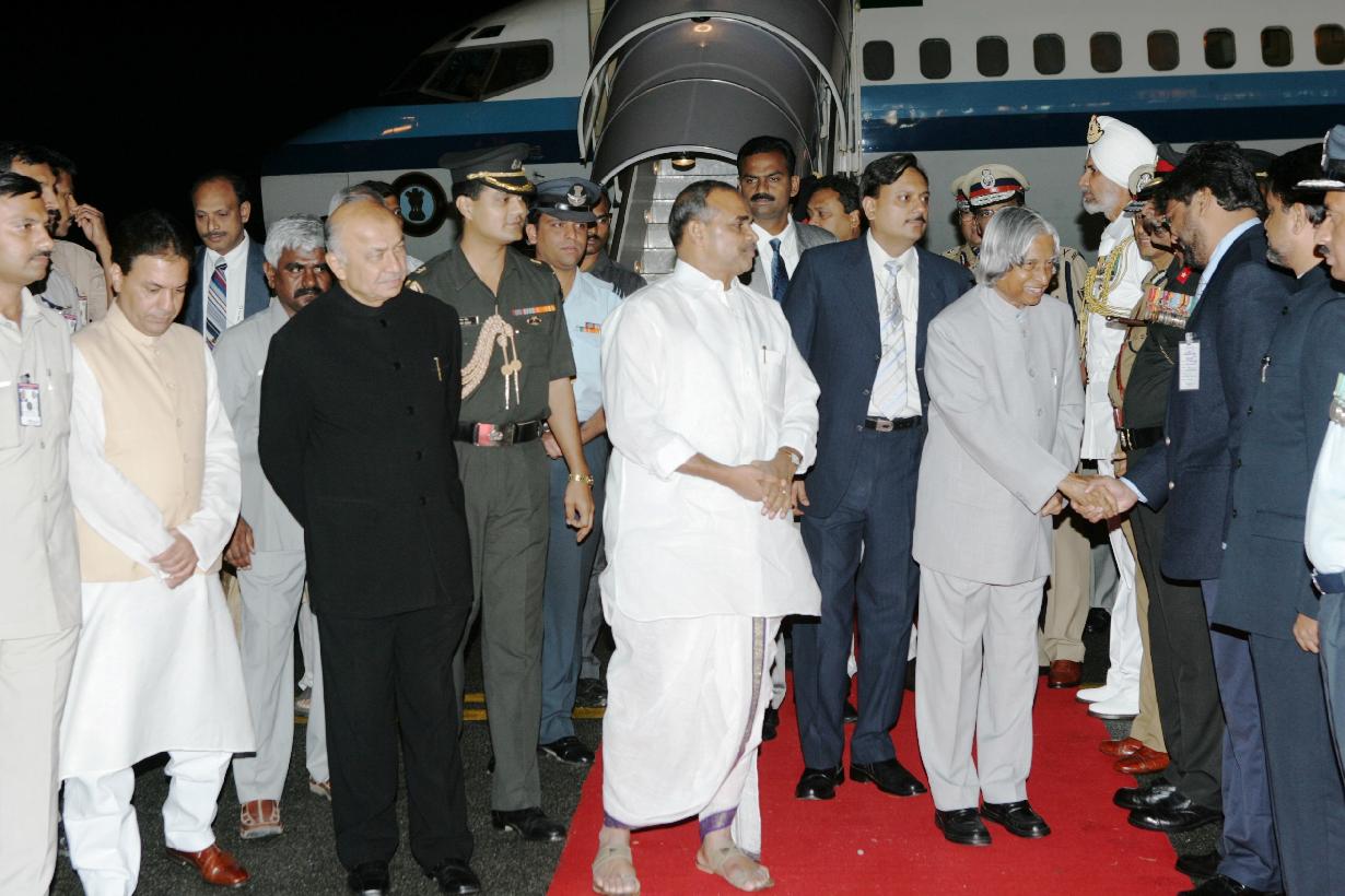 | Caption: | The President of India, Dr A P J Abdul Kalam being received at Hyderabad Airport in Andhra Pradesh on Oct 14, 2005 |