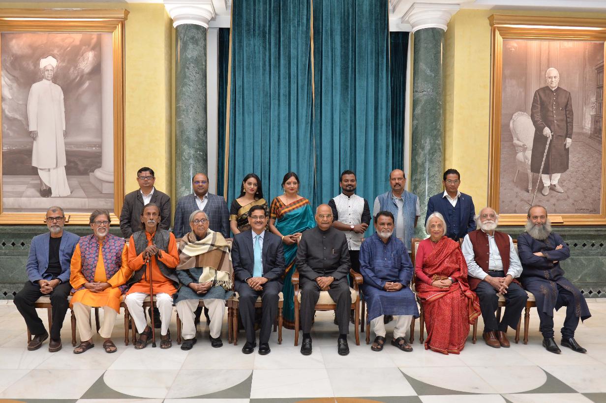 | Caption: | The President of India, Shri Ram Nath Kovind with the Artists-in-Residence, at Rashtrapati Bhavan Cultural Centre on November 17, 2019. |