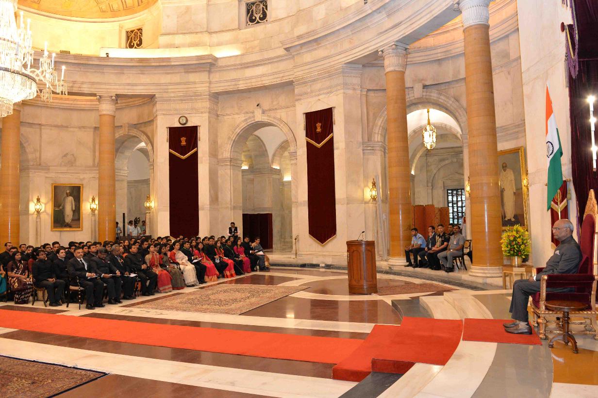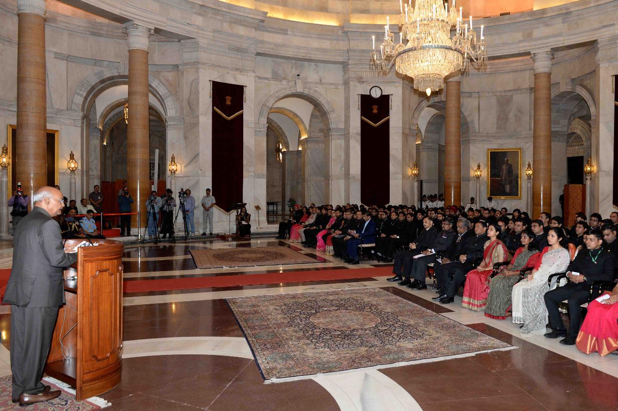 | Caption: | The President of India, Shri Ram Nath Kovind meeting with the Assistant Secretaries (IAS Officers of 2016 Batch), at Rashtrapati Bhavan on July 27, 2018. |